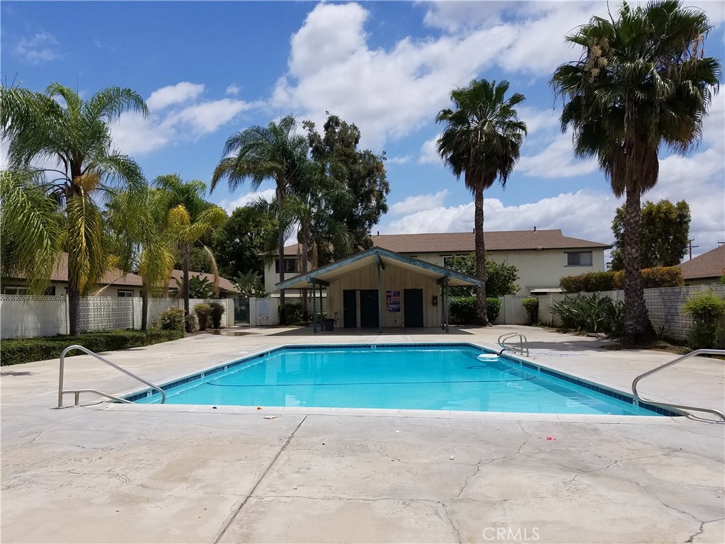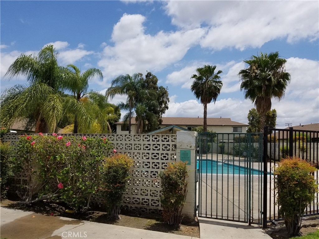 REDUCED FOR QUICK SALE. Move-in ready. Ideal for first time buyer or investor, a rare find for a single level with no one above or below. This end unit features 2 beds/2baths, new laminate flooring throughout, new paint, new windows, new stove, restored cabinet surfaces. Spacious layout makes it look bigger than square footage listed. Oversized closets. Covered patio. Washer/dryer hookup in patio. Gated parking lot. Short walk to community pool. Low HOA dues. Easy access to freeways, shopping, restaurants, & schools.