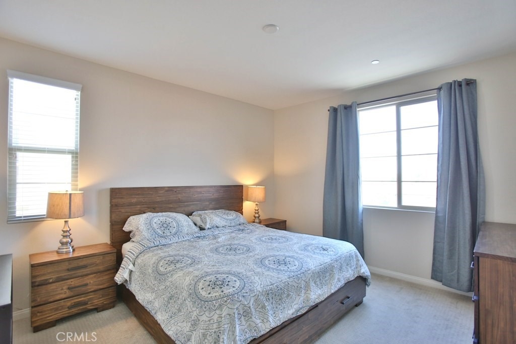 This beautiful, newly built detached home is fully equipped with many upgrades: large entertaining island with quartz countertops, stainless steel appliances, window shutters, hardwood floors, premium carpet in all the bedrooms, water softener system, filtered water system and is wired for an alarm system. As you walk into this luxury modern home, you will see a private front yard with a beautiful garden. The first level entry way has the guest bedroom with an adjacent full bathroom and quick access to a spacious 2-car garage. Take the stairway to the second level you'll find an open concept living and entertainment area with a 10 foot high ceiling, dining area and kitchen. The kitchen offers a huge island with quartz countertops, pantry and plenty of cabinet storage, 1/2 bathroom/powder room, and a private balcony just off the dining area. Take a second stairway to the top floor you'll find two spacious private master suites with dual vanities and a full bathroom. In the hallway between the two master suites, you'll find extra storage cabinets and a closet with stackable washer and dryer units. You will adore every piece of this home. The community is also well maintained with plenty of guest parking, low HOA dues and no Mello Roos. Restaurants and shopping areas are within walking distance and access to the 5 and 91 freeway are just minutes away.