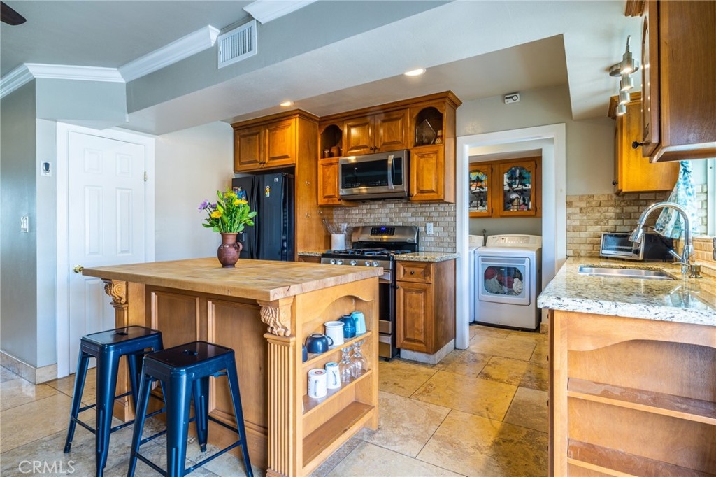 3 bedroom 2.5 bath condo end unit property available only 1 common wall Lots of features your not going want to miss newer updated double pane windows crown molding French doors from kitchen to your private covered patio half bathroom down stairs next to you're inside laundry. Kitchen is a chefs dream custom cabinets pull out drawers easy close cabinet doors 2 islands one with butchers block counter top other with granite counter top. Stainless steel range and microwave. Costume tile back splash tile flooring throughout bottom floor. Hallway bathroom on top floor all custom tile in shower granite counter top and tile flooring. All bedroom on 2nd floor Wood flooring throughout top floor mirror closet doors in all rooms. Master bedroom includes granite counter top in bathroom and a walk in closet. Patio is great for you're morning coffee or family gatherings French doors connect kitchen and patio for great entertaining flow. Lots of stores and shops within walking distance property.