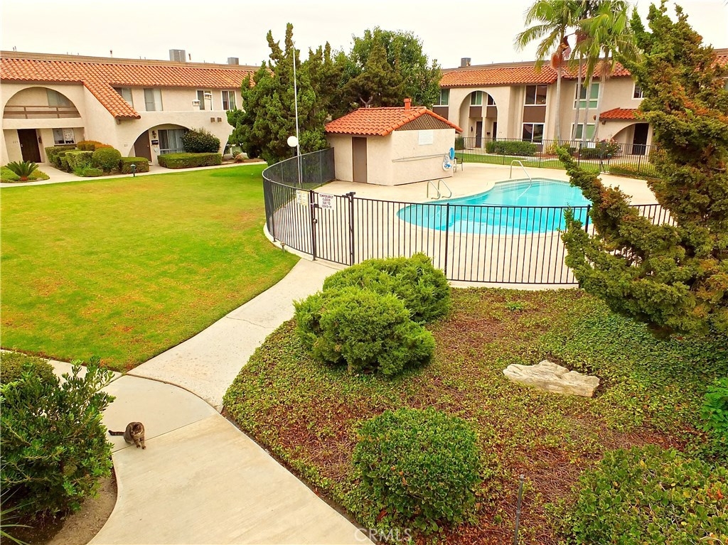 Wonderful Anaheim Townhome. Large 3 bedroom, 3 bath 1,500+ square foot unit in smaller complex. Downstairs bedroom/office and 3/4 bath great for guests. Updated eat in kitchen with granite countertops and breakfast bar. Spacious and open floor plan downstairs with combined living and dining. Central air condition and ceiling fans. Direct access via the large patio to 2 car garage. Large master bedroom suite with huge walk-in closet and balcony. Complex has a heated pool and lush common areas. Low HOA fees make this a great home for first time buyers.Unit close to the pool boasts great views of park-like green belts and pool. Wonderful home close to shopping, entertainment, and freeways.