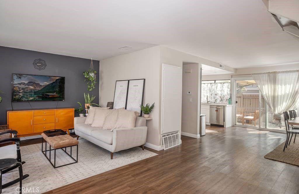 Welcome Home to this beautiful Desirable 4 bedroom townhouse in convenient Anaheim location. Spacious open floorplan, large living areas down with living room, huge dining area and a beautiful remodeled white kitchen cabinets with upgraded new appliances. New water heater, flooring, air purifier. Relaxing private patio for outdoor entertaining connects the home to a large 2 car garage. Upstairs are four sizable bedrooms plus a full hall bathroom and attached master bath. Forced air heating and central air conditioning. Laundry is in the garage. Conveniently located near refreshing community pool. The Community also offers a clubhouse and well maintained grounds for your enjoyment.