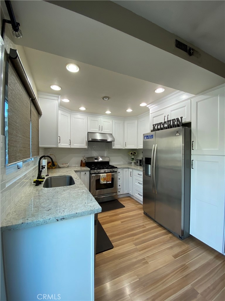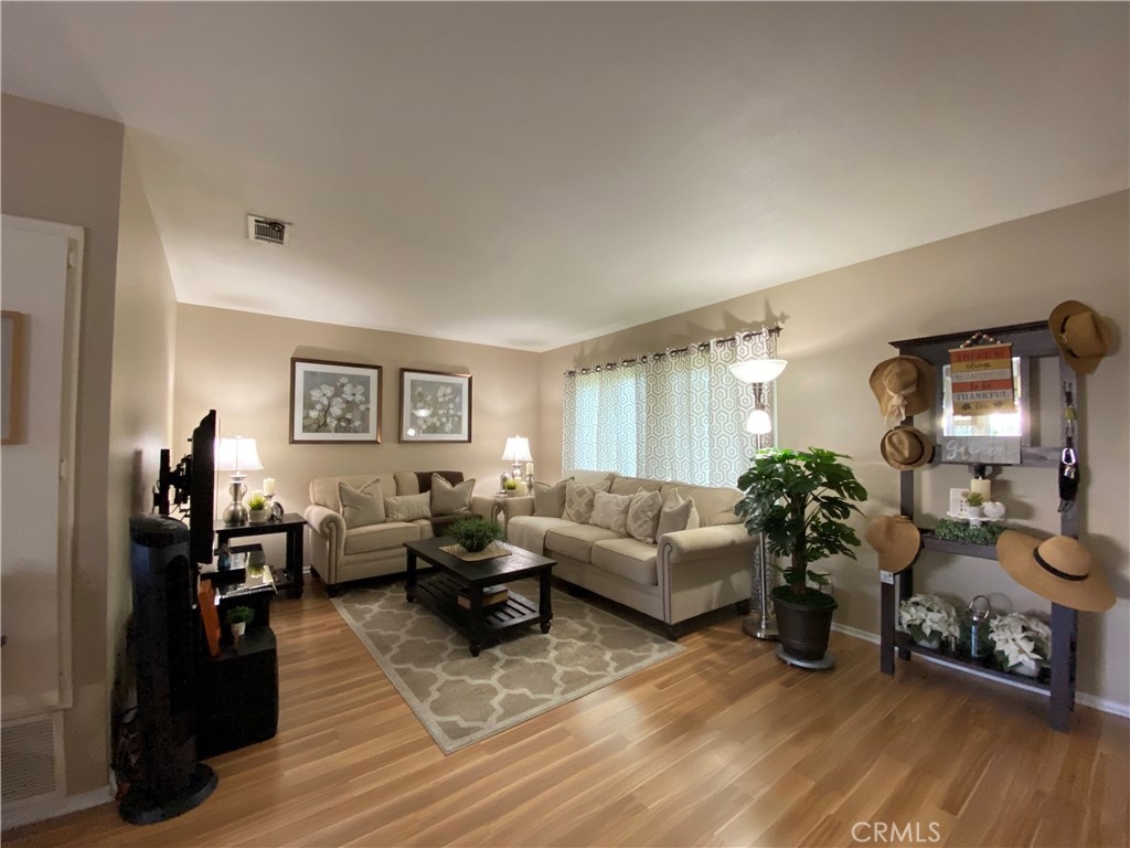 This 1525 sq ft 4 bedroom townhome in convenient Anaheim location. Spacious, open floor plan also offers 2.5 baths, leaded glass entry door, Luminous wood flooring runs throughout the lower level, completed by recessed lighting, large windows providing a bright & airy, large living areas down with living room, huge dining area and beautiful kitchen featuring quartz counter tops with upgraded cabinets, stainless appliances. Recessed lights in kitchen. Relaxing, private patio for outdoor entertaining, connects home to large 2 car garage. Upstairs are 4 sizable bedrooms plus a full hall bathroom and attached master bath.. Central air conditioning. Laundry is in the garage. Conveniently located near refreshing community pool. Community also offers a clubhouse and well maintained grounds for your enjoyment. You won't want to miss this one!