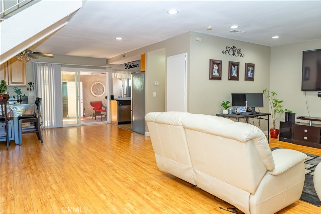 Stunning extra large townhome! Beautifully upgraded throughout and nicely located in highly desire community in the heart of Anaheim. This spacious 4 bedroom 2.5 bath home offers an open floor plan with vaulted ceilings and significant upgrades throughout the entire unit, including new laminate flooring, new paint, new double pane windows, newer bathrooms, updated kitchen with granite counter tops, recessed lighting and so much more!!! Large master bedroom with private all upgraded bathroom and vanity area with double closets, the other 3 bedrooms are very spacious with great natural light. Private covered patio with a nice seating area connects to the 2 car garage. New water heater and furnace. You will not be disappointed, this is a beautiful property! HOA $249 covers water, trash & exterior maintenance. Lease land fee per month is $49 and it expires in 40 years. Not FHA approved. Will not last ... come see it!