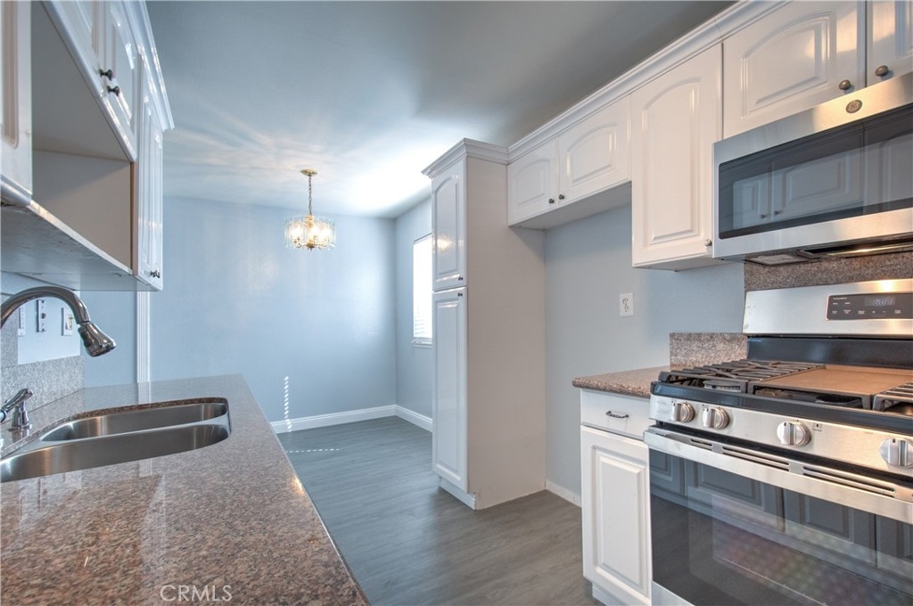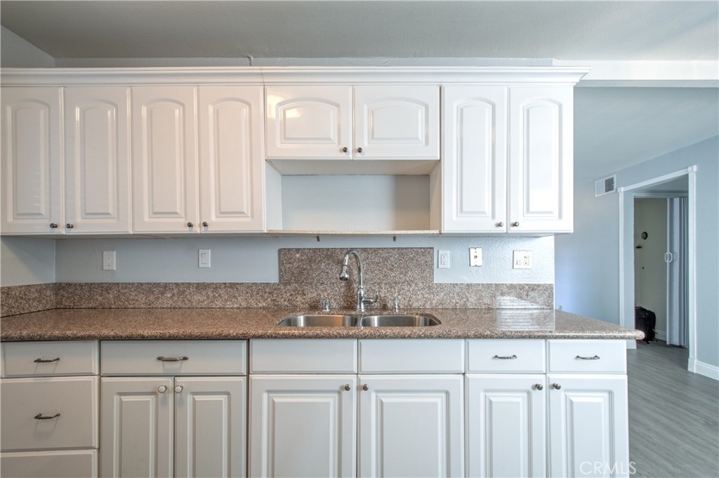 Wonderful downstairs end-unit ready for move in! Upgrades include a remodeled kitchen with granite countertops, new stove and microwave; freshly painted interior, retextured ceilings, new luxury vinyl flooring, new six panel doors, and new master bath vanity. This spacious floor plan offers two large bedrooms, one en-suite bath with separate vanity, large secondary bath with tub, and an open living room that leads to an enclosed patio with a storage closet.