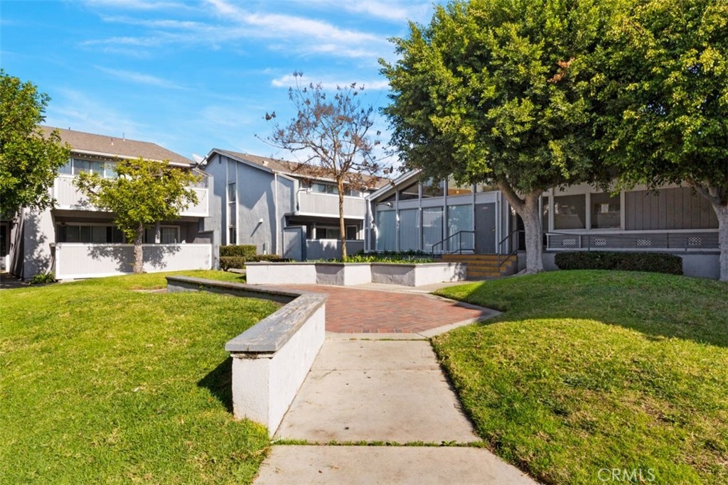 This wonderful 2 bedroom and 2 full bathroom condo, is located in the lovely community of Brookhurst Village. This corner unit is perfectly nestled on the bottom floor, so you can easily access your home without the inconvenience of steps. The home features a living room balcony and an additional patio that accessible through the master suite. This home has been recently updated to include laminate flooring, recess lighting all through out, an upgraded bathroom, fresh paint and so much more! The kitchen includes granite counter tops and some stainless steel appliances. The spacious master bedroom features dual floor to ceiling closets and a jet tub that is perfect for relaxing. The gated community features 2 pools/ spa, a playground, 3 laundry facilities, and a clubhouse. The home also comes with one carport parking, one assigned parking and ample guest parking. In addition you can easily walk to a plethora of stores and restaurants. This home also features low HOA fee that also includes your water and gas. This is one home you do not want to miss!