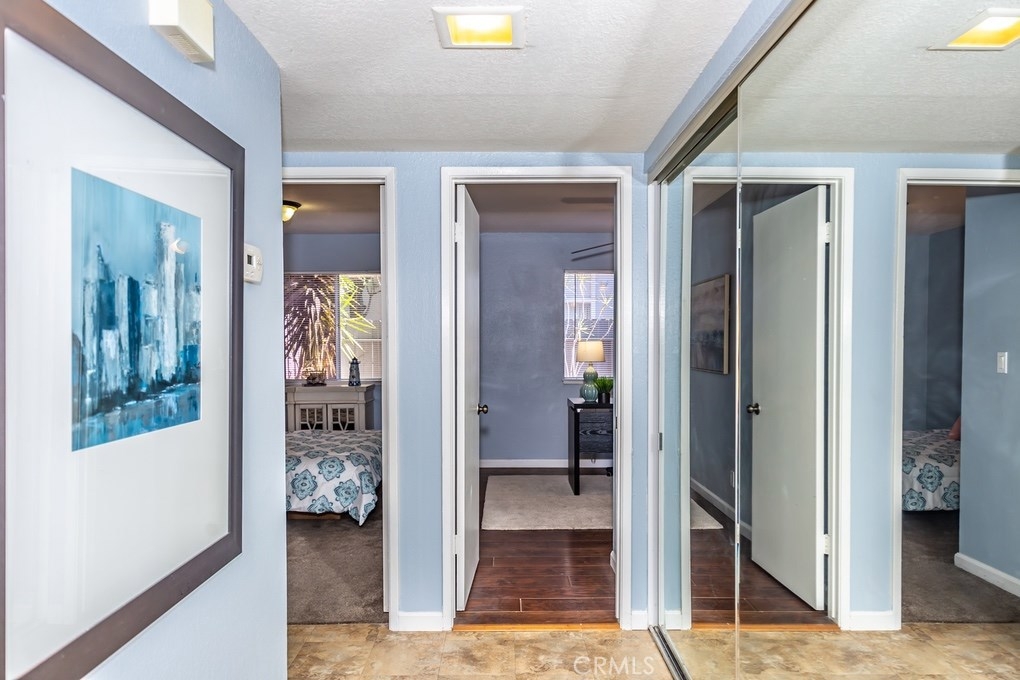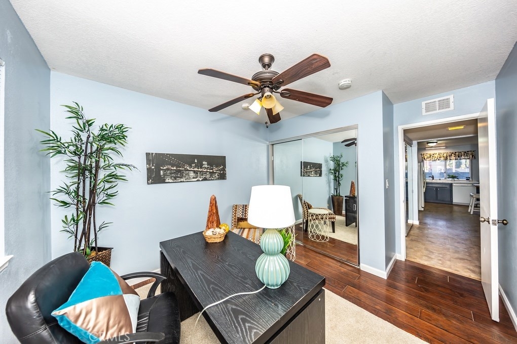 Welcome to this wonderful one level home in a gated community that has three bedrooms two bathrooms and a large private back area. Entering the home, you are greeted with laminate wood flooring and an open living room with nice natural lighting. The kitchen has a great open concept with a large kitchen island, tile counters, matching white appliances, newer cabinet hardware, and an area for a dining room or breakfast nook. From the kitchen, you have access to one of the two outdoor living areas. The front patio is enclosed and covered and features a storage room. Entering back into the home you have the spacious master bedroom with dual mirrored closets, carpet flooring, and access to the large private backyard area. The backyard flooring is brick but has the option of removing the brick to add grass. The master bathroom features tile flooring and counters, a vanity area, a new faucet, and light fixtures, an enclosed toilet room, and a walk-in shower. On the other side of the home, you have two additional bedrooms and a guest bathroom. Bedroom two has gorgeous wood flooring and mirrored closet doors. Bedroom three has carpet flooring and mirrored closet doors. The full guest bathroom features a new vanity, new faucet and light fixtures, tile flooring, and a new toilet. The interior is freshly painted. The HOA features two pools, a spa, laundry facilities, a playground, and a clubhouse. All within a short distance to schools, shopping, restaurants, and entertainment.