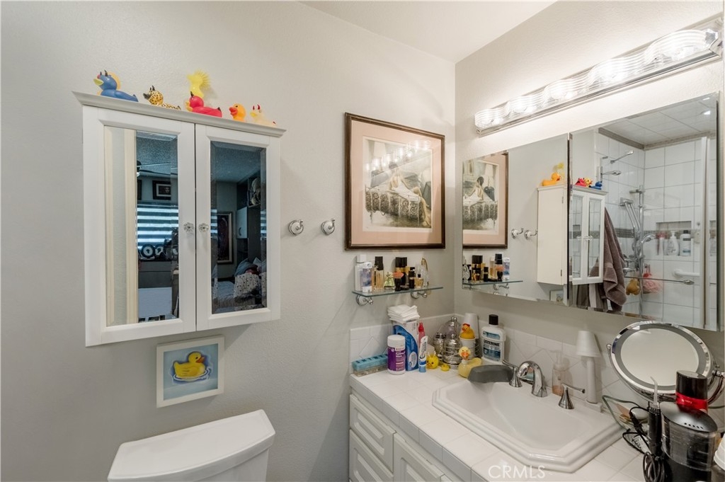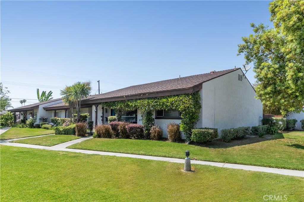 This property is located in beautifully landscaped Casa Emperador, which includes a gated community with pool, tennis court, and RV parking. You actually own the land when purchasing this property. Walk into this home and enjoy the expansive ceilings and open floor plan. This 2 bedroom condo also has a bonus room that could be used as a bedroom, dining room, or office. The expansive tiled patio gives lots of room to entertain or watch Disney fireworks. The retractable awning is perfect for the days that you want a little shade. Matured lemon and fig trees that produce multiple times a year. Come see for yourself why this is truly one of the most exceptional values in Anaheim!