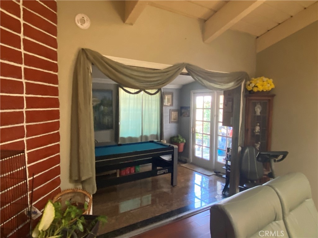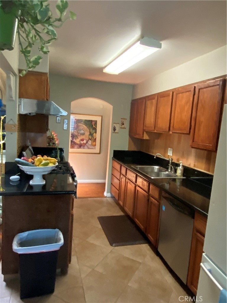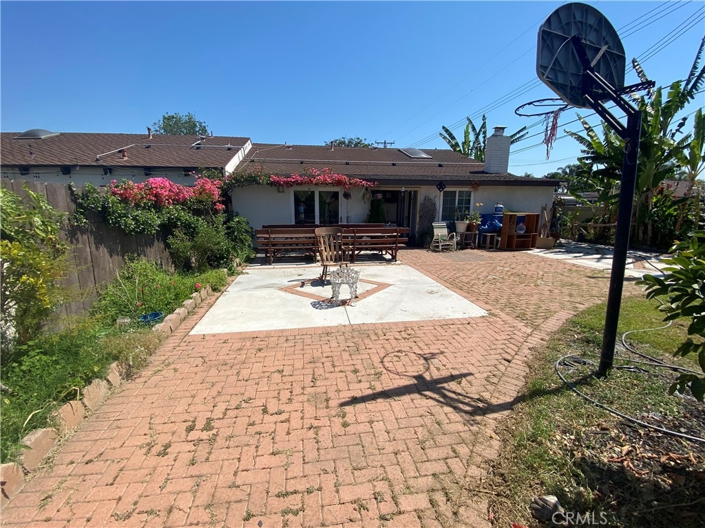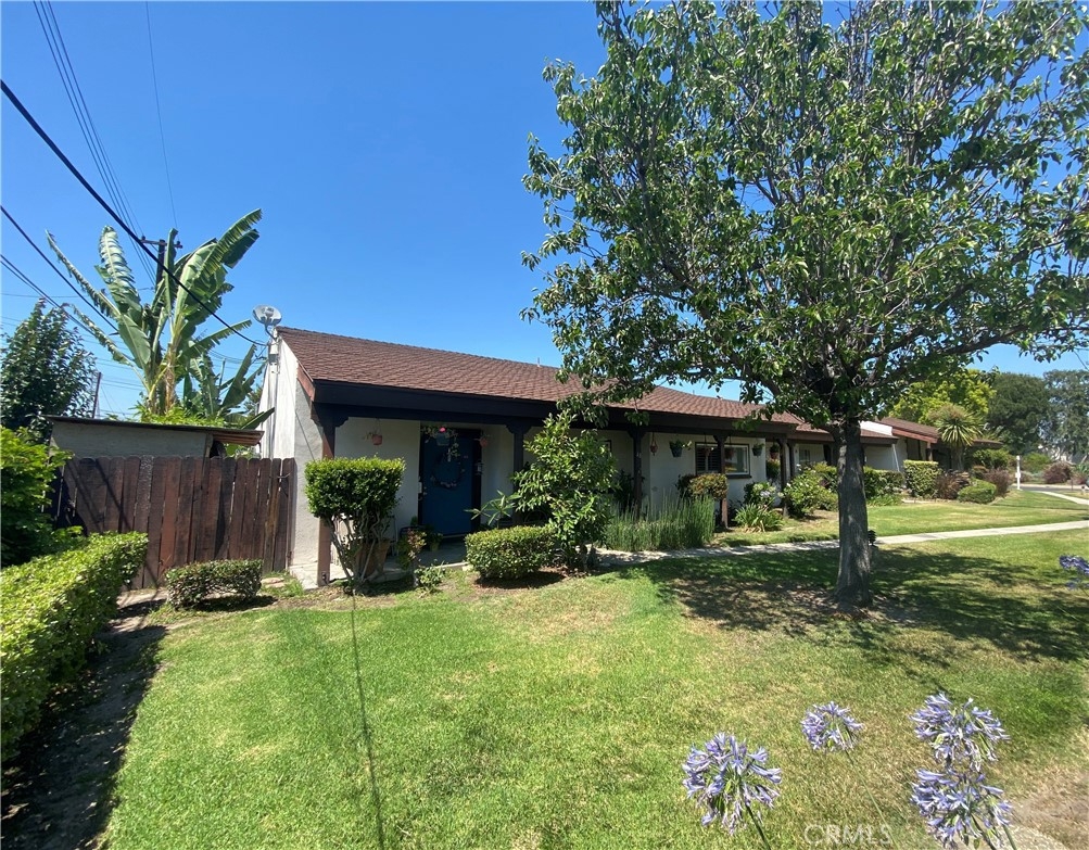 Opportunity Knocks for this Rare End unit with oversized backyard and Side Yard Space! Centrally located in Gated Community of Casa Emperador with Pool, Tennis Court, Clubhouse and RV parking available. Single Story with 2 Bedroom 2 Bathroom plus a third room option (den,office,bedroom). An additional 300sq. ft. addition to living area and the 2nd bedroom for added space. Vaulted Cathedral Ceiling with skylight and exposed Beams, Laminate Floors, Fireplace, Granite Kitchen Countertops, Kitchen Dining Nook with built in cabinets, Front window plantation shutters, Bathroom finish tile, Central and additional A/C units. Laundry Hook Ups Outside on patio and has community Laundry access. Fruit Trees and flowers surrounding the spacious yard. Close to Shopping, freeways, Disneyland & Downtown Disney, Gardenwalk plus much much more!! A little TLC on this great unit and make it your forever home!! HOA Covers Water Plus some trash and sewer. This unit is on LEASED LAND and sold AS-IS.