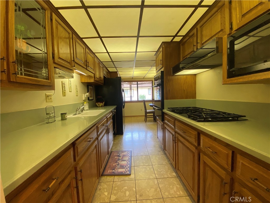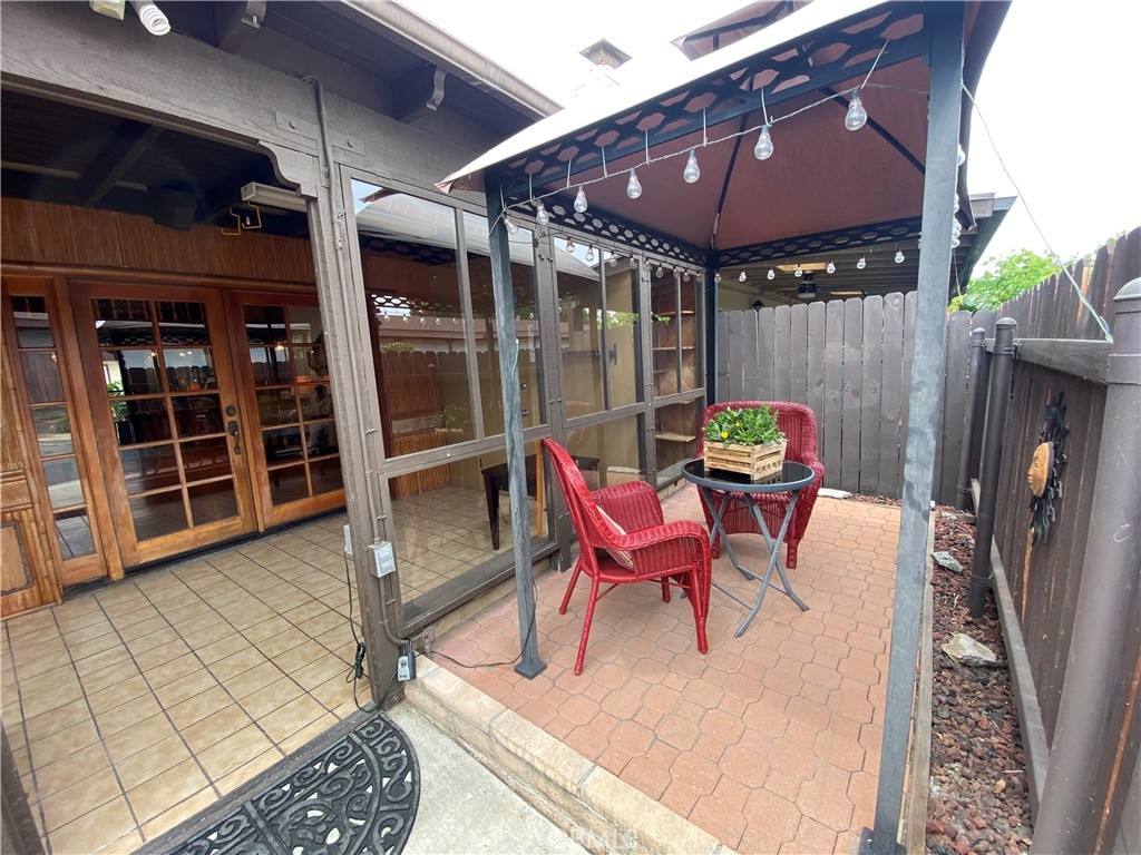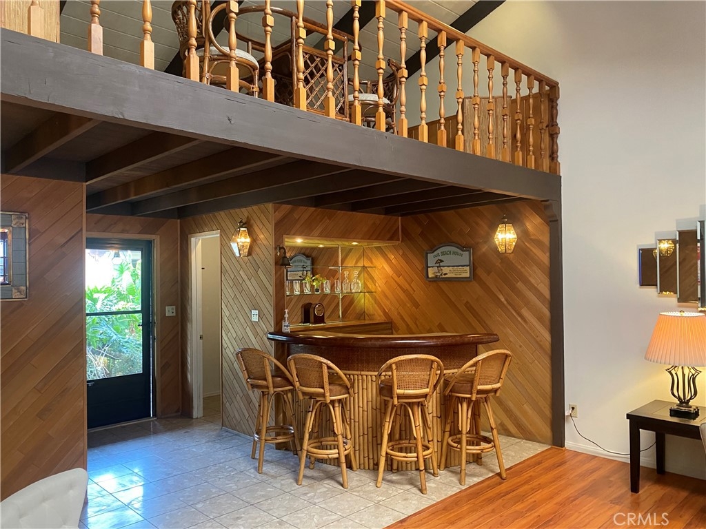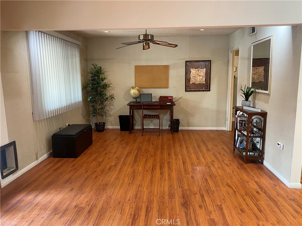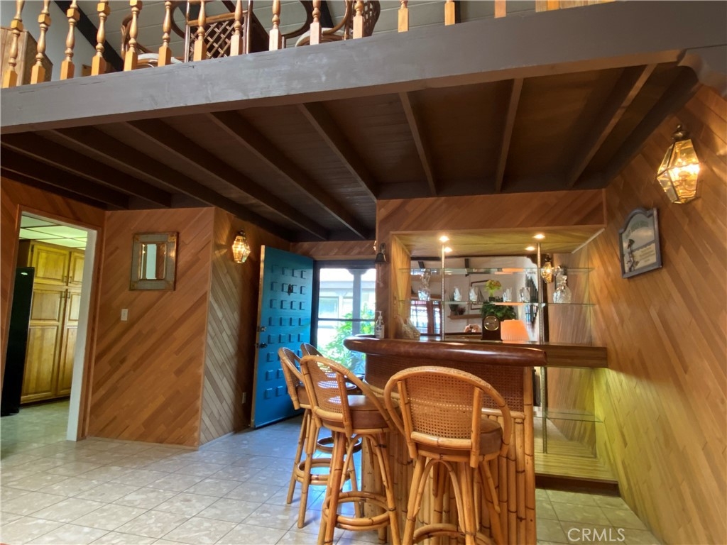 OWN THE LAND with this spacious home! Super flexible floorplan with volume ceilings has massive living room with raised-hearth fireplace, bar area (funky freestanding polynesian bar and glass shelves can stay), open den that could be a dining room or 3rd bedroom, PLUS a LOFT in addition to the master suite and second bedroom, hall bath with dual vanity (blue tub and commode to live your mid-century or tropical design dreams), Corian Kitchen with large eating area and pantry! Could be 4 bedrooms if you use the loft and den! All this plus an enclosed patio room with huge storage closet, outdoor covered patio with workshop and washer/dryer shed, and a covered gazebo area too (freestanding gazebo can stay/go). Gotta love the decorative wood panelling in the entry and bar area, and the decorative bamboo fencing lining the enclosed patio that gives this home a fun tropical getaway vibe. The neighborhood is GATED and so well maintained with the pool surrounded with a massive covered poolhouse, clubhouse, tennis, dog park, community RV parking (!!) and more. 2 carport spaces include storage cabinets.