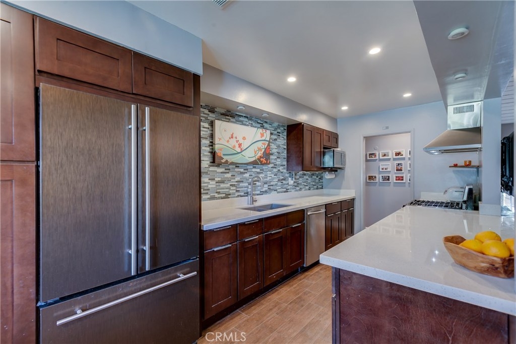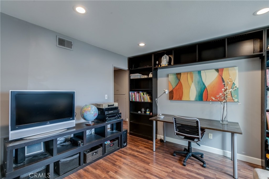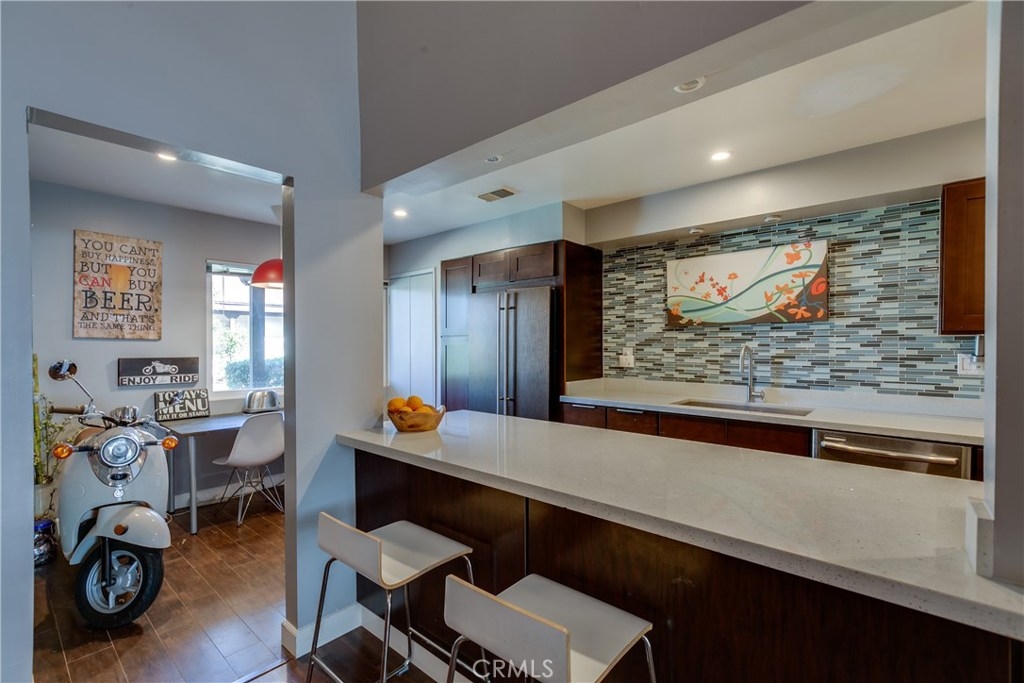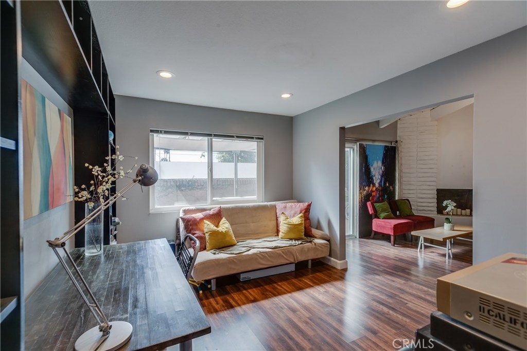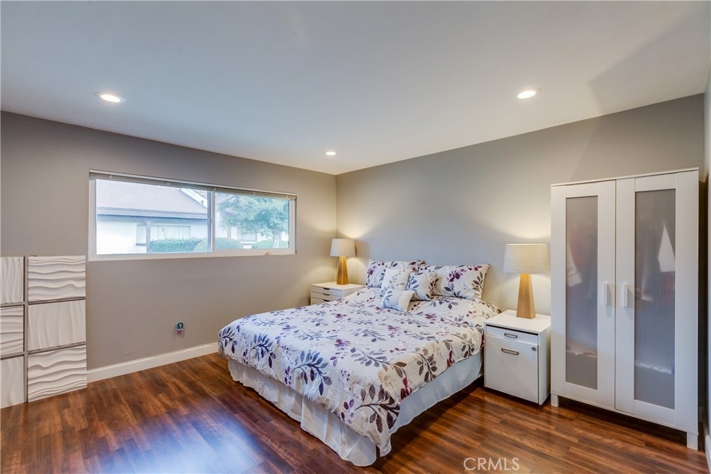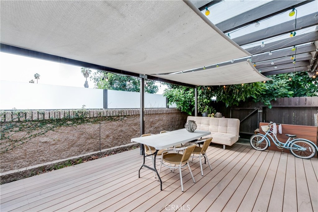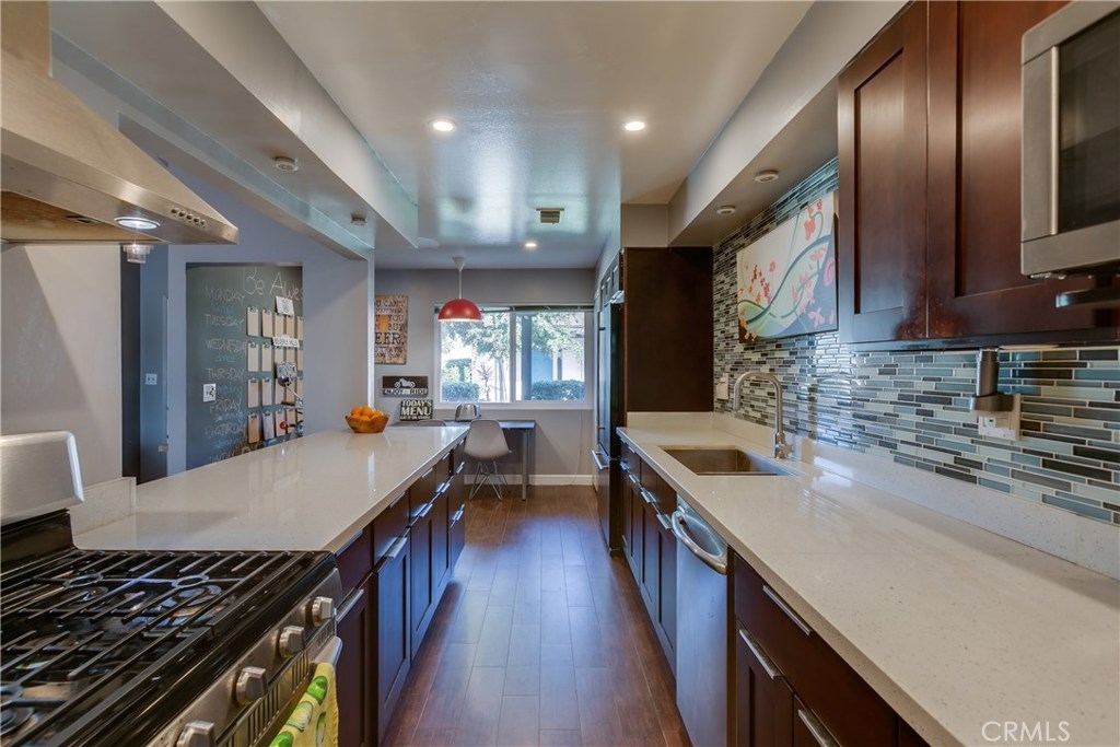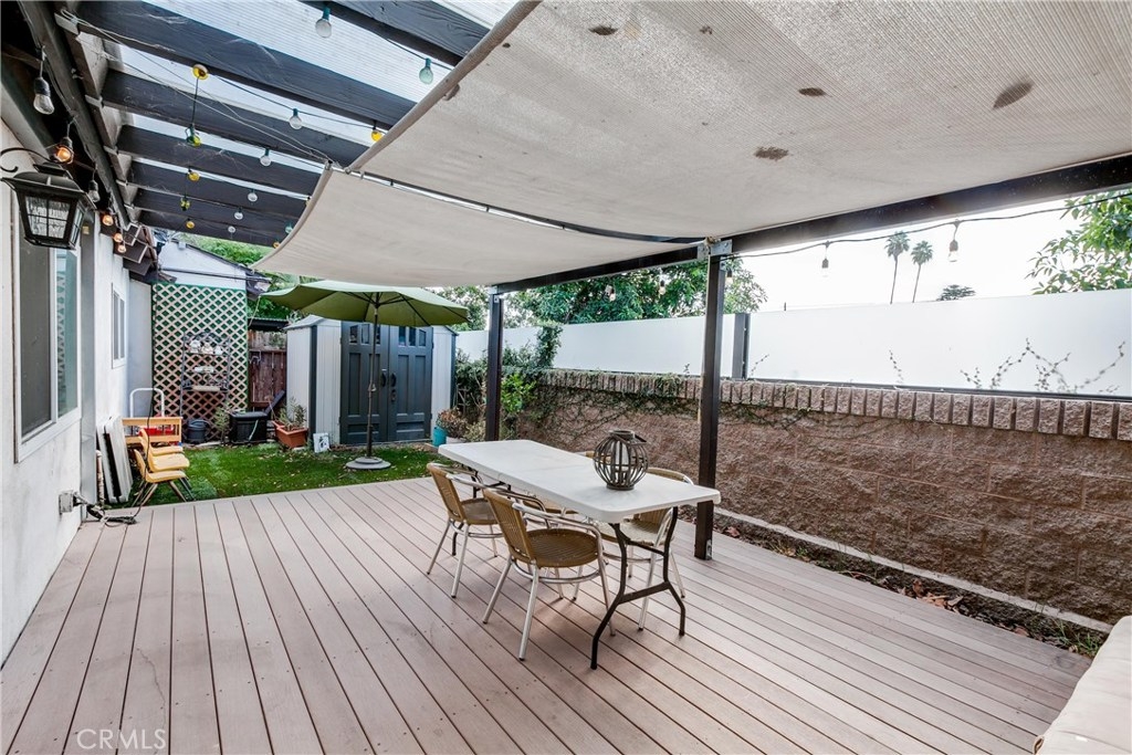 SELLER OWNS LAND, NOT A LEASE. THIS GORGEOUS END-UNIT TOWNHOUSE IS THE LARGEST MODEL IN THE CASA EMPERADOR GATED COMMUNITY!!! HIGHLY UPGRADED ONE STORY WITH TWO BEDROOMS, TWO BATHS, AND A DEN THAT CAN BE CONVERTED INTO A THIRD BEDROOM OR FORMAL DINING ROOM! ENTER TO A CATHEDRAL CEILING, AND FIREPLACE IN A SPACIOUS OPEN FLOOR PLAN. THE KITCHEN HAS BEEN UPGRADED WITH QUARTZ COUNTERTOPS, CABINETS WITH PANTRY AND SOFT CLOSE DRAWERS, NEW APPLIANCES, AND BREAKFAST NOOK. BOTH BATHROOMS HAVE QUARTZ COUNTERTOPS AND NEW VANITIES. RECESSED LIGHTING AND HARDWOOD FLOORS THROUGH-OUT THE HOUSE. INSIDE LAUNDRY WITH WASHER/DRYER HOOKUPS. CENTRAL AC. FROM THE LIVING ROOM, A SLIDING DOOR OPENS TO A PRIVATE, LARGE, ENCLOSED BACKYARD WITH DECK, PATIO, AND STORAGE SHED. BACKYARD ALSO HAS A SIDE GATE LEADING TO A LARGE SEMI-PRIVATE GREENBELT AREA FOR CHILDREN TO PLAY IN OR FOR ENTERTAINING. BEAUTIFUL PARK-LIKE COMMUNITY WITH ALL THE AMENITIES: COMMUNITY POOL, TENNIS COURTS, BASKETBALL COURTS, CLUBHOUSE, PICNIC AREA, BBQ, AND WELL MAINTAINED LANDSCAPING. EASY GUEST PARKING. ENCLOSED RV AND BOAT PARKING AVAILABLE. CLOSE TO DISNEY RESORT, KNOTTS, AND ANAHEIM STADIUM.