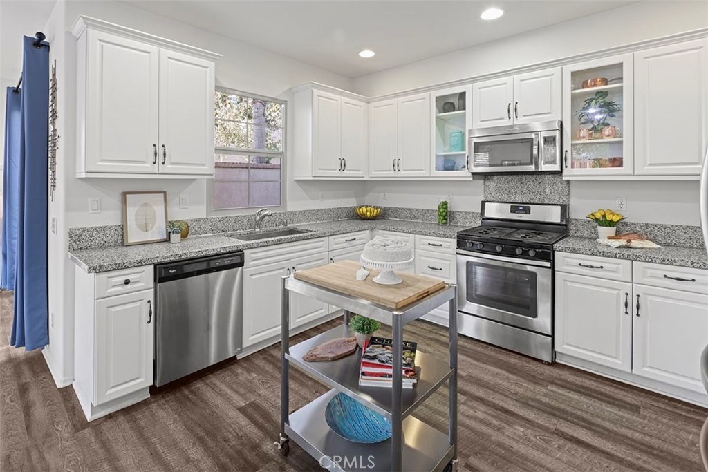 This DETACHED 4-BEDROOM CONDO WITH INCLUDED TESLA SOLAR PANELS in Colony Park has the perfect layout to call home, complete with a yard & large front patio! As you enter the home, you are greeted with gorgeous vinyl wood plank flooring and open concept living. The kitchen features white Thermofoil cabinets with an abundance of storage, stainless steel appliances and is open to the living & dining room. The living room gives access to your private fenced yard as well as the adorable front patio. You will also find a powder room on this level & direct access to the 2-car garage. Upstairs, you will find all 4 bedrooms, a large hallway bathroom with dual sinks and a ton of counter space and the laundry room. Down the hall is the master retreat. The master bedroom has plenty of natural light, a stylish wallpaper accent wall, a gigantic walk-in closet and en-suite bath with dual vanity, stand up shower and oversized soaking tub. This unit also comes with a tankless water heater and water softener and solar panels through Tesla. This community has a ton of amenities, low HOA dues and no Mello Roos. Amenities include: 3 pools, 2 spas, 3 clubhouses, BBQs, fire pits, security, fitness center, dog park, gorgeous landscaping and a neighborhood park. It is also blocks away from the popular Anaheim Packing House and a quick drive to other attractions such as Disneyland, Angel Stadium and the Honda Center.