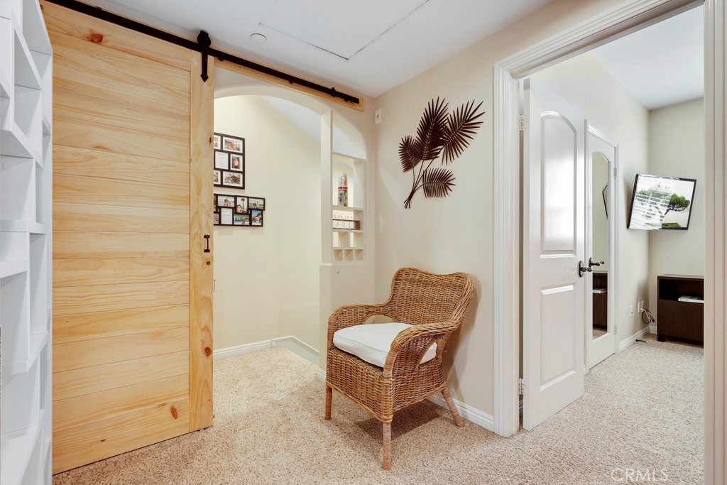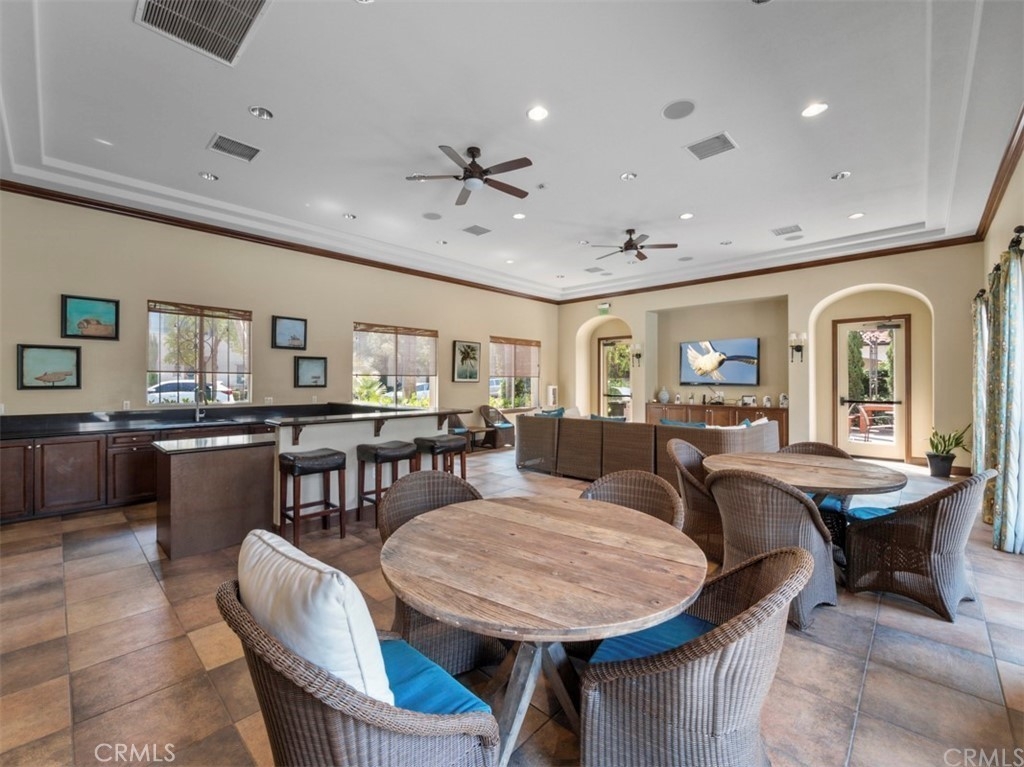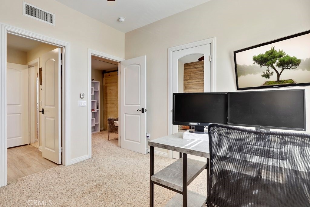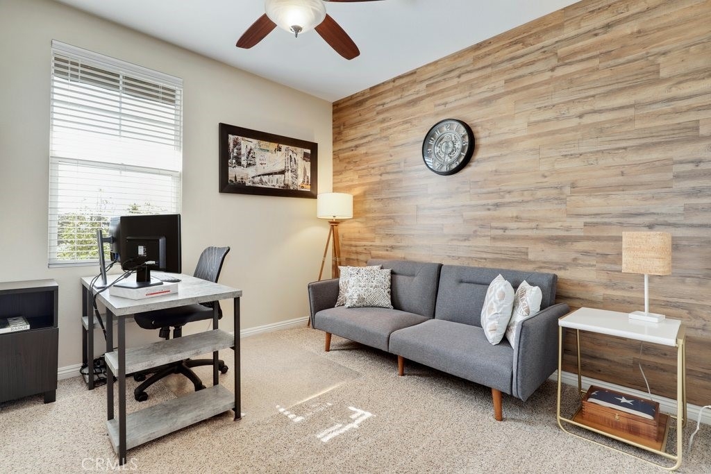 Gorgeous four bedroom home in prestigious Colony Park in Anaheim features bright white modern tones, luxury laminate plank flooring, custom blinds, recessed LED lighting and arched doorways that make for an elegant space. This contemporary home boasts large windows that allow an abundance of natural light to illuminate the open floor plan throughout. The first floor is perfect for a work from home office space or a private bedroom with a full bathroom. Up the stairs to the open concept main floor living area where the kitchen impresses with clean white Shaker style cabinetry, under cabinet lighting, Quartz countertops, full glass tile backsplash, plenty of counter space, storage and pantry. Stainless steel 6 burner gas range, refrigerator with dual ice makers, microwave, dishwasher, farm style stainless steel sink and reverse osmosis water system. The adjacent dining area flows seamlessly into the living room with a brick style accent wall, modern ceiling fan and a large glass door that leads out to the private patio – great for evening sunsets and BBQs. Down the hallway to the spacious primary ensuite with a beautiful, oversized step-in floor to ceiling shower with double shower heads, dual sink Quartz top vanity with LED mirror and tile flooring, large walk-in closet with custom organizers, ceiling fan and carpet. The secondary bedrooms are a generous size and share a full bathroom with dual sinks and small loft area with a modern barn door that complete the top floor. Direct access to the two-car garage with storage racks, tankless water heater, and water softener. Enjoy the community amenities: sparkling pools, spas, BBQ areas, playground, club houses, workout room, dog park and more. Nearby are Downtown Anaheim, Packing House, Disneyland, shopping, restaurants, and easy access to the 5, 91, 22, 5 and 57 freeways.