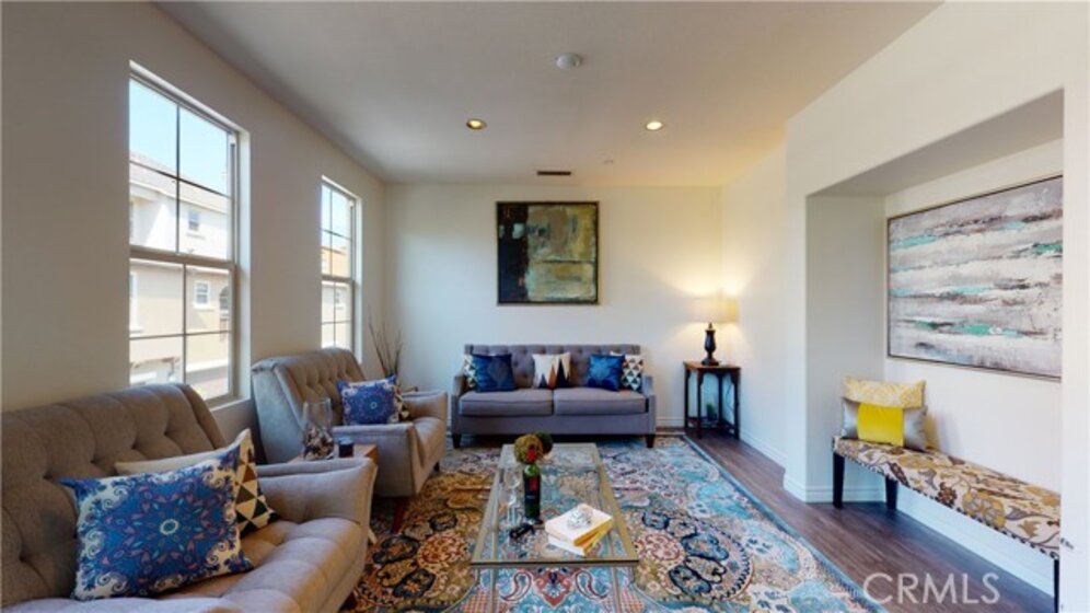 This end unit 4-bedroom 4.5 bath Legacy condo in Colony Park has everything one needs in a home and even a view of Disneyland fireworks from the 3rd level. Enter the home from the gated private patio. On the first level, you’ll find the first bedroom, full bath, laundry room and access to the 2-car garage. The second level is the open concept main living space with brand new laminate flooring throughout. The spacious kitchen has granite countertops with an oversized island and stainless steel appliances and opens up to the living room, dining room and balcony. You’ll also find a half bath in the hallway and one bedroom on this level with its own 3/4 bath. On the third level, you’ll find one bedroom with attached bath and the master retreat equipped with 2 walk-in closets and en-suite bath with dual sinks, large soaking tub and walk in shower. This unit also comes with a tankless water heater and water softener and has brand new laminate flooring & paint throughout. This community has a ton of amenities, low HOA dues and no Mello Roos. Amenities include: 3 pools, 2 spas, 3 clubhouses, BBQs, fire pits, security, fitness center, dog park, gorgeous landscaping and a neighborhood park. It is also blocks away from the popular Anaheim Packing House and a quick drive to other attractions such as Disneyland, Angel Stadium and the Honda Center.