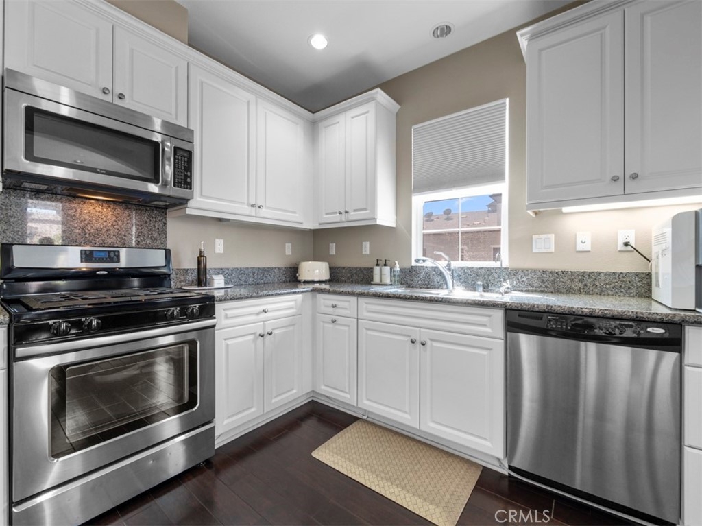 Welcome to a gorgeous tri-level townhome in the highly desirable Colony Park! This stunning townhome has 2 bedrooms and 2 en-suite baths, plus a half bath and attached 2 car garage. Well maintained, the immaculately kept home has an open floor plan kitchen, dining room and living room on the second level. The private patio off the kitchen is perfect for a small BBQ. The third level includes a spacious master suite with two closets and dual sink master bath. Across the hall is the secondary bedroom with its own ensuite bathroom. The home includes a water softener. The community offers resort style amenities with 3 pools, clubhouses, multiple BBQ areas, fire pits, on site security guards, 24 hour fitness center, dog park, tot lot and more! This home is located down the street from Anaheim packing House and a short drive to Disneyland, Honda Center, Angel Stadium, and more!