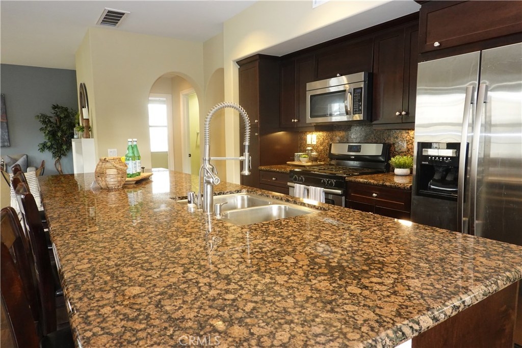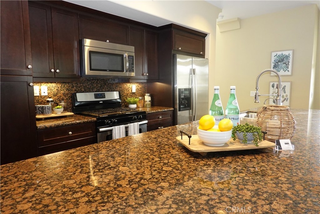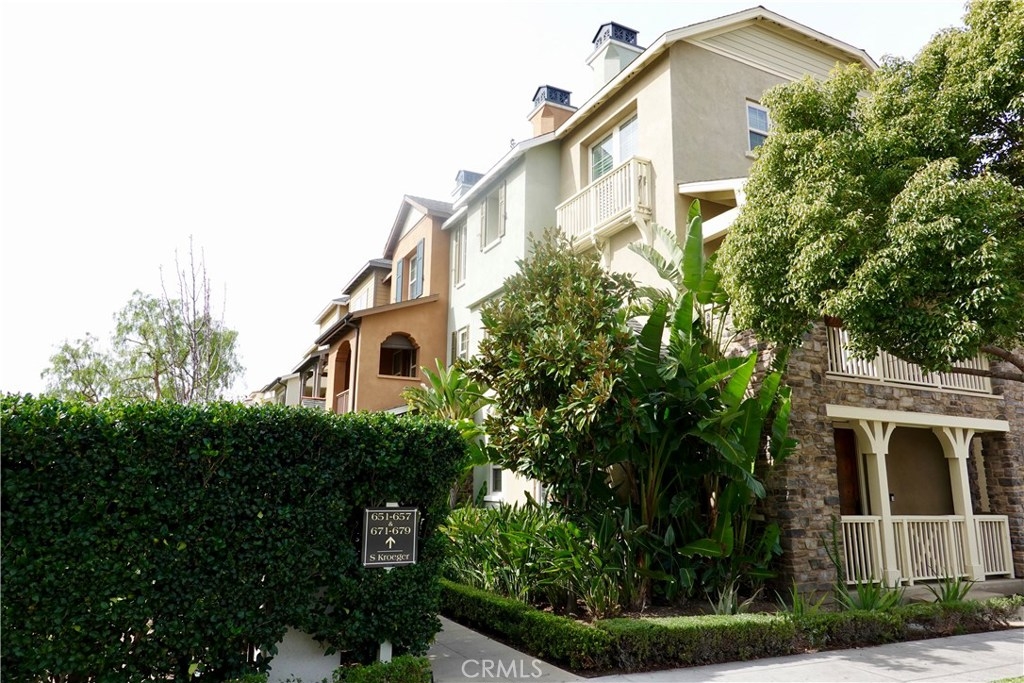 Welcome to 679 S Kroeger, a luxurious turnkey townhome at Colony Park in the Anaheim Colony Historic District. This spacious corner townhome boasts 4 bedrooms and 4.5 baths across it's 3 levels which share 1945 sqft of living space. Upon entry you are greeted with a foyer, a first floor bedroom suite, a laundry room and access to the 2 car garage. The 2nd floor living area has an entertainers ideal open floor plan dressed in nine foot ceilings, recessed lighting and wood flooring that flows seamlessly from cozy fireplace centered living room to well appointed gourmet kitchen to dining area and finally a large balcony. The gourmet kitchen is decked out with granite countertops, stainless steel appliances and an oversized island with sink and breakfast bar. Additionally, the second floor is outfitted with a half bathroom for common use as well as a 2nd floor bedroom with en suite bathroom. The third floor finishes with a master suite with large tub, separate shower, dual sinks and walk-in closet as well as an additional bedroom with full bath and a shared linen closet. Colony Park has many common areas including multiple pools, parks, community rooms, a gym, low HOA dues, no Mello-Roos and low property tax rate. 679 S Kroeger is perfectly situated near all major freeways, only a few minutes walk from the popular shopping/dining experience at Anaheim Packing District, theme park fun at Disneyland and Knott's Berry Farm, and entertainment at Angels Stadium and Honda Center.