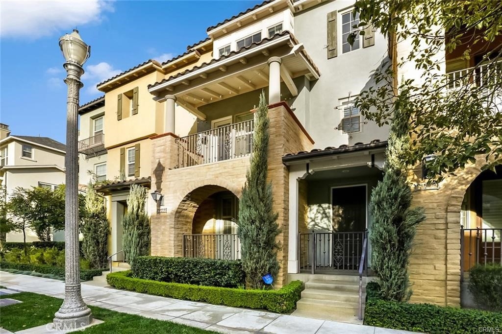 This bright and open tri-level townhome located in the Colony Park community of Anaheim is move-in ready. Enter on the first level which features a bedroom with an en-suite full bathroom and a French door to the front patio, perfect for guests, and direct access to the two-car garage. Upstairs to the second level is the inviting living room, with rich laminate wood floors, a cozy fireplace, built-ins and a French door to the spacious and private balcony. The living room seamlessly flows to the open kitchen well-appointed with fresh white cabinets, granite counters, stainless steel appliances, a large center island with breakfast bar and a French door to a second private balcony. A powder room and laundry closet complete the second level. Upstairs to the third level, the master bedroom offers dual closets and an en-suite bathroom with dual sinks and a walk-in shower. The third bedroom is generously sized and features an en-suite full bathroom. Enjoy the resort-like Colony Park amenities which include 3 salt water pool & spa areas, 3 clubhouse recreation centers, fitness center, BBQ areas, fire pits, playgrounds, dog park and 24-hour on-site security. Enjoy the community hosted events - movie night and 4th of July parade and an active Neighborhood Watch. Nearby Anaheim Packing House, Disneyland, Knott’s Berry Farm, Garden Walk, The Block and Cal State Fullerton make for delightful Anaheim living!