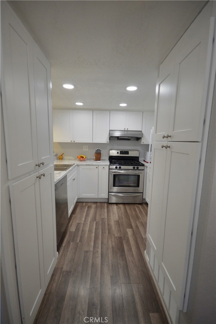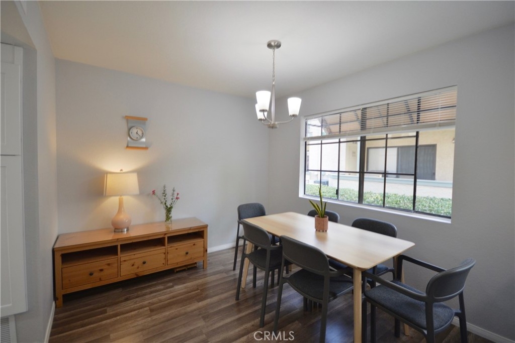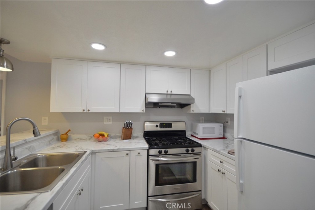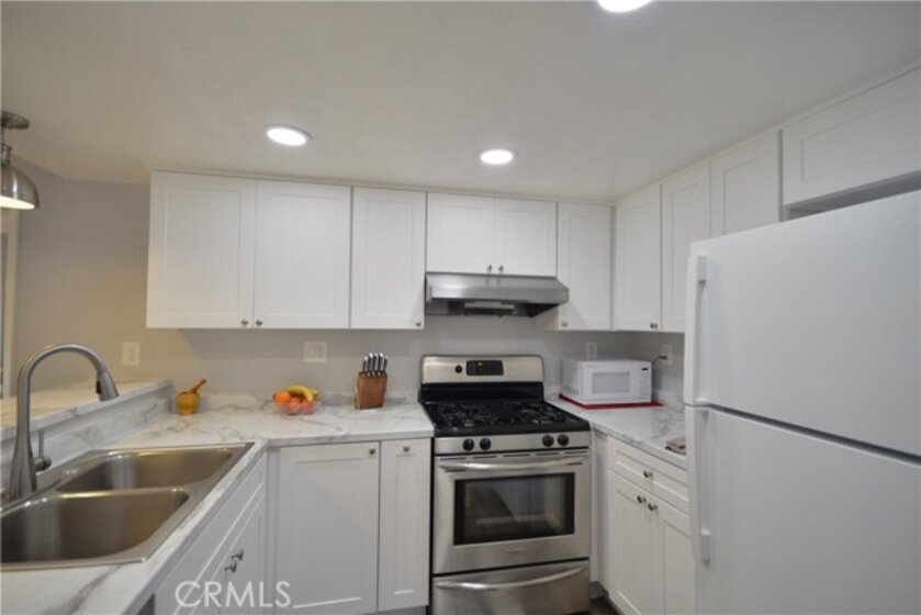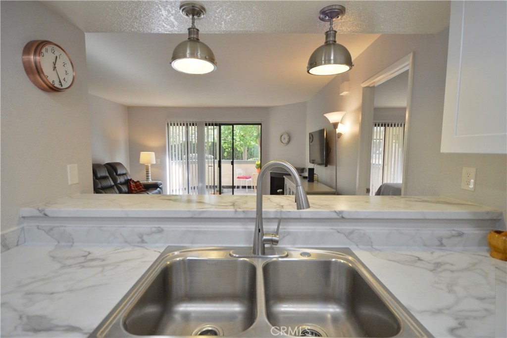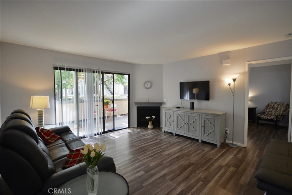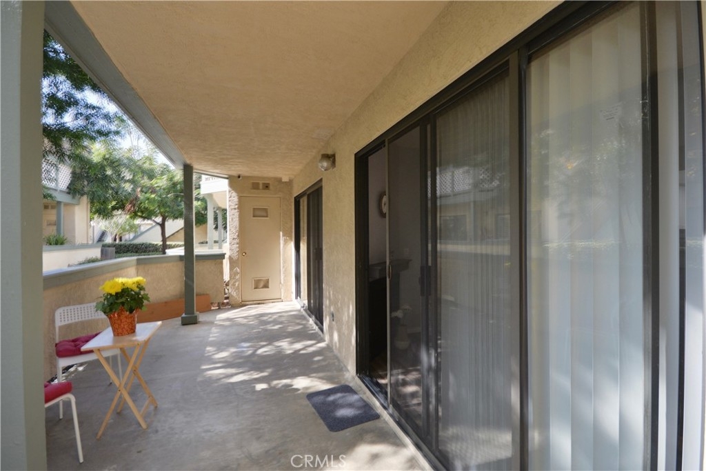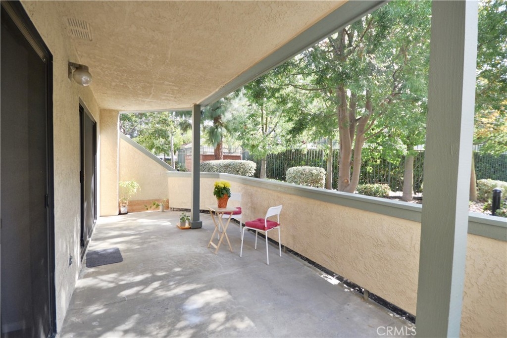 This highly desirable single level first floor end unit in the highly sought after community of Evergreen Country Villas in North Anaheim is beautifully remodeled and in turn-key condition with an open concept floor plan. The spacious living room has a fire place and breakfast bar with large glass sliders that open up to the fenced in patio, perfect for enjoying your morning coffee as you bask in the fresh air and ambience of the tree-lined views. The beautifully remodeled kitchen has stainless steel appliances and plenty of cabinet space. The large bedroom offers a huge walk-in closet and vanity dressing area with a large glass slider leading to the fenced in patio. There's a large laundry closet that fits a full size stackable washer/dryer with room for storage. Besides the breakfast bar, there's a formal dining room. The living room has a gas fireplace which makes for a cozy atmosphere during the cooler evenings. This condo is steps to the association pool and spa and comes with two private carport spaces side by side and close to the condo. This community offers plenty of guest parking. Evergreen Village offers 2 beautiful pools, spas/saunas and the low association fees includes water, trash, basic cable TV, internet and building insurance.