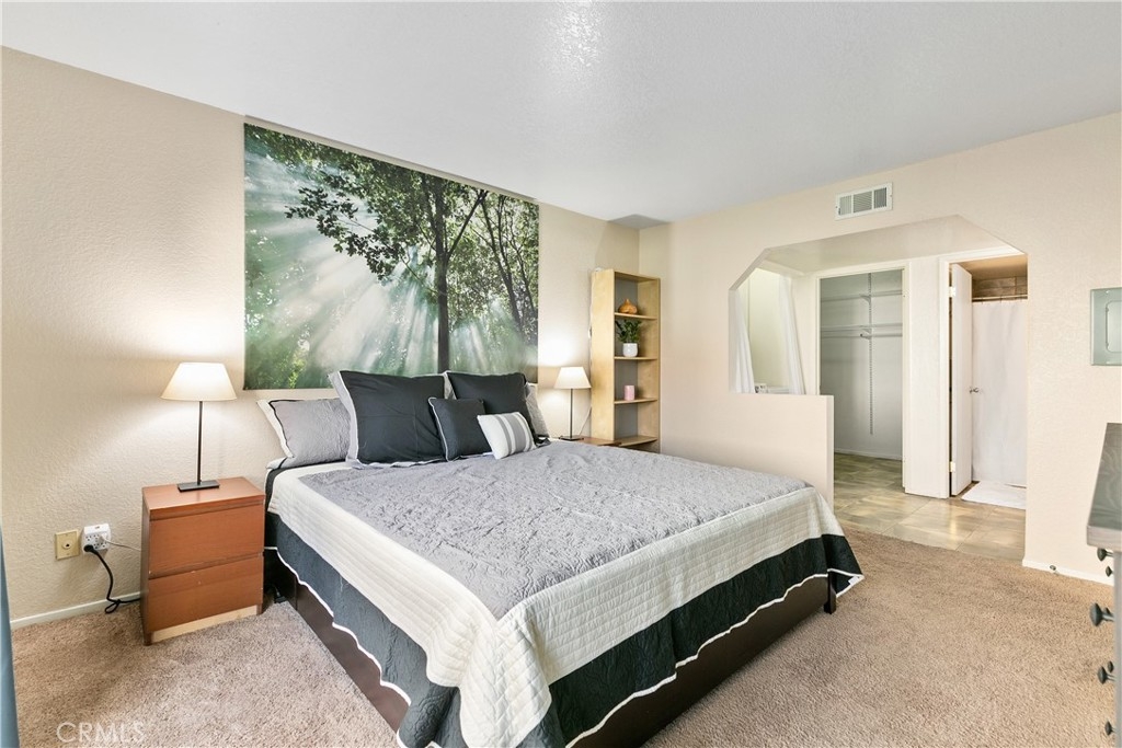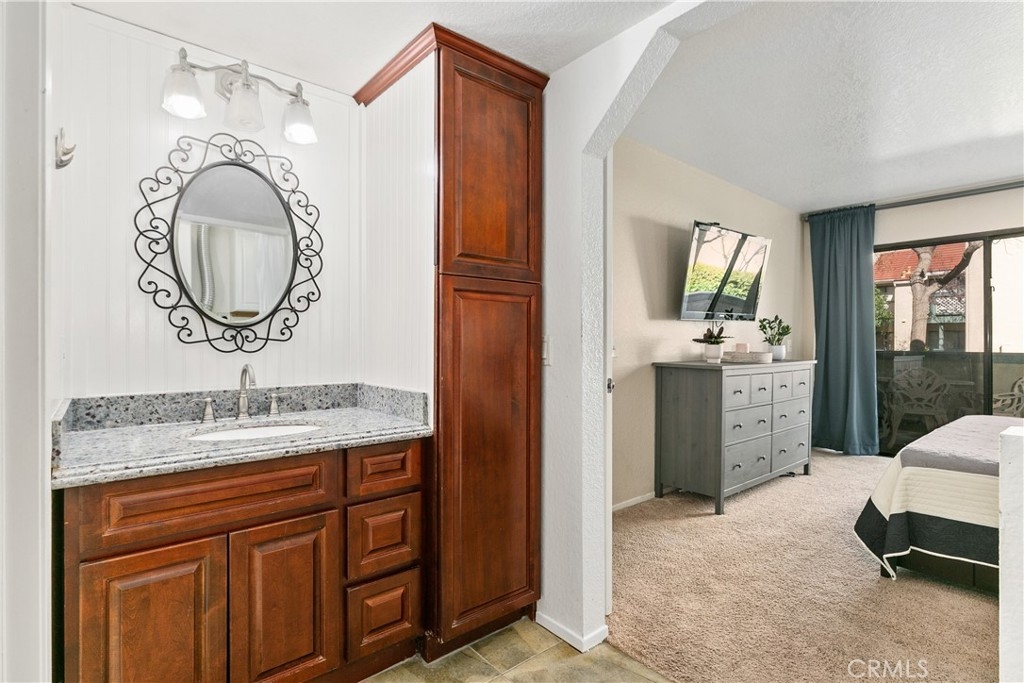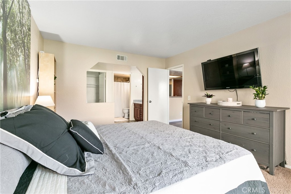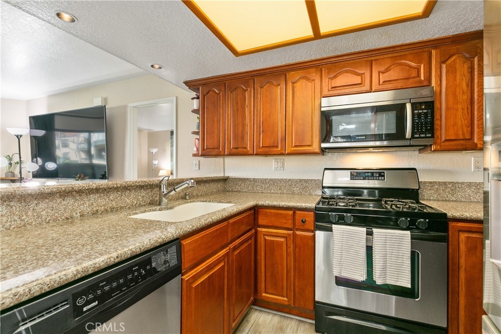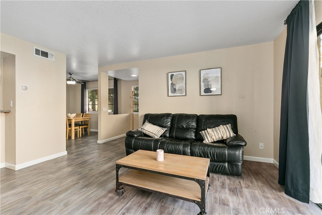 WELCOME TO YOUR NEW HOME. Nestled in the heart of Anaheim this home is located in the desirable community of Evergreen Country Villas. This single story 1 bed 1 bath downstairs end unit sits on premium location with greenbelt views. The living room has a cozy fireplace & a slider leading to the generous patio, where you can BBQ and entertain family and friends. The kitchen remodel features walnut cabinets, granite countertops, & stainless steel appliances. An inviting dining area is just off the kitchen which allows a casual entertaining space. The spacious primary bedroom has a large walk-in closet, slider to private patio and an ensuite bathroom. Home features full-sized inside laundry, wood-like vinyl floors with new baseboards, custom paint, & newer water heater. Home comes with 2 Single Covered Carports #108 & #109 that are conveniently located within walking distance to the home. Community amenities include 2 pools, each with its own spa and sauna, and well-maintained lavish greenbelts. HOA fees include: Master Insurance, Water, Trash & Cable. The home is centrally located near restaurants, shops, malls, freeways, and schools.