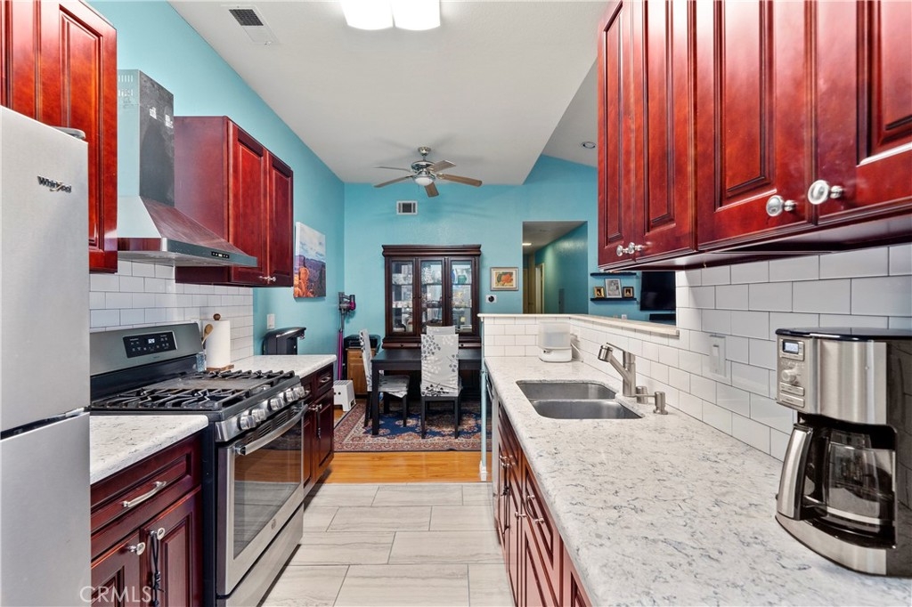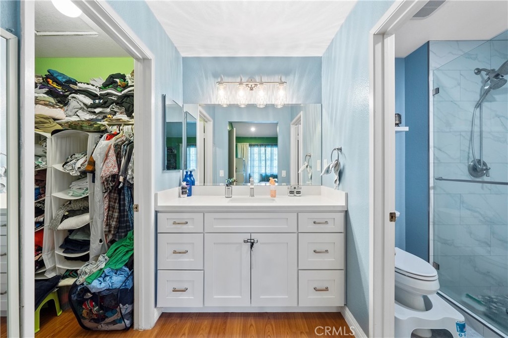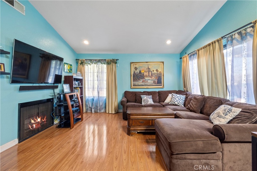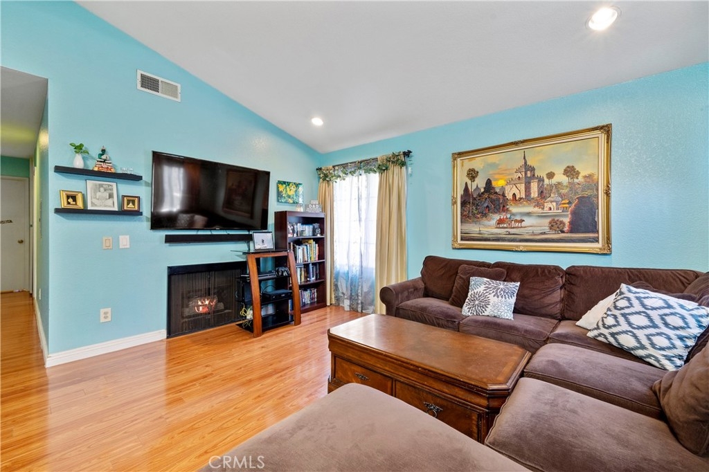 Come view this recently renovated 2 bed 2 bath condo in Anaheims Evergreen County Villas. This home is super clean and move in ready. Upon entering you come into the family room which features wood flooring and a fireplace for these colder fall months. The kitchen and has been recently updated with new counters, backsplash, cabinets and more. Each bathroom has also been tastefully updated with tiled showers and bath. The master bedroom is spacious and has a walk in closet. The homes heater is also brand new and features an air purification system. In addition the home does have 2 individual single car garages located close to the unit. The HOA provides 2 separate pools/spas, a sauna, outdoor maintenance, water, trash and even cable with the Showtime channel and other major channels.