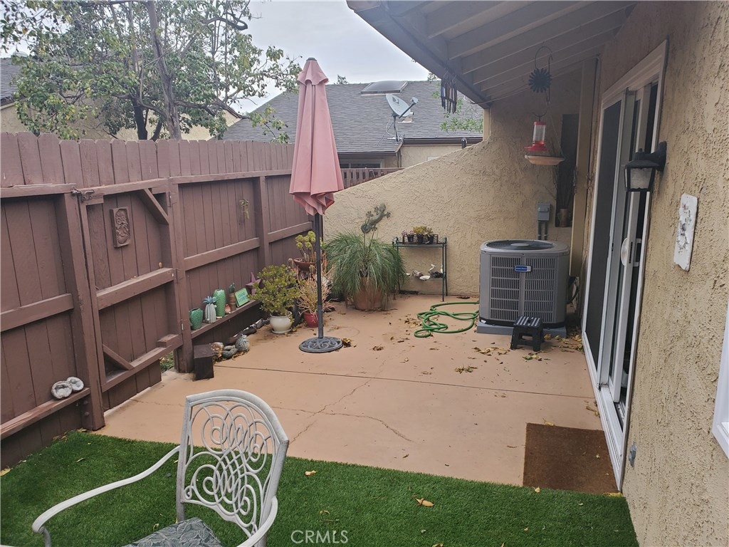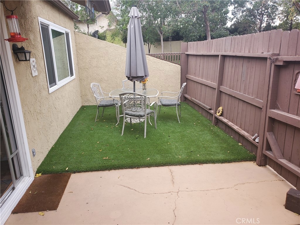 What A Find! Single story, cul-de-sac home, located near the Anaheim Hills and City of Orange border, offers two bedrooms, two patios and easy access private parking. Welcoming front entry with a fenced covered patio, attached garage and carport. Plus, enjoy the private backyard patio with a convenient garden gate leading to a serene park-like setting. Spacious living room with backyard patio access hosts a cordial dining area and opens to the kitchen showcasing beautiful Shaker style wood cabinets, granite counters, breakfast bar, four burner gas range, microwave, and hall pantry/closet. Wood flooring, dual pane windows, ceiling fans, wardrobe mirrors and window coverings. Newer air conditioner/heater. Attached garage with laundry area, storage shelves, front patio access. Community benefits include the pool and clubhouse. Close proximity to award winning schools, shopping, dining, and transportation making this residence the perfect place to call home.