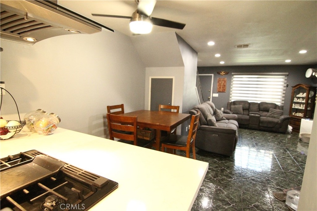 Welcome home to this Beautiful Condo! This property features 2 bedrooms 1.50 baths, Main front entry opens up to spacious living room which offers a Cozy fireplace, ceramic flooring, lots of room to entertain, remodeled kitchen with beautiful gray custom cabinets and backsplash, countertops are made from Quartz. Stainless Steel appliances included and yes, the seller is including the refrigerator. There's a dining area add your table or simply add stools to the breakfast nook. Modern Custom paint throughout the home. New Smart outlet/devices some with USB ports. Smart devices installed like a smart thermostat in the living room, dining room and bedrooms have smart lights plugs as well they connect with Alexa or Google, New Ring Door Bell, New Windows, New ceiling fans, There's a 1/2 bath downstairs and full bath upstairs. New toilets installed. Jack and Jill upstairs bathroom shared. New vinyl flooring on the stairs and upstairs flooring. Individual laundry room located downstairs fits 2 full washer and gas dryer machines with plenty of storage cabinetry. Extra storage under the stairs. Backyard patio has enough room to put patio table and a barbecue. One car garage detached located just outside the backyard of the unit, very good thing to have and be near the unit. Community offers a Club house, a pool, water paid, maintenance of the common area and additional parking for a fee. Located conveniently by the 5 Fwy, shopping centers in the Anaheim Plaza, Disneyland, and Knott's Berry Farm. Low hoa fees. Must See!