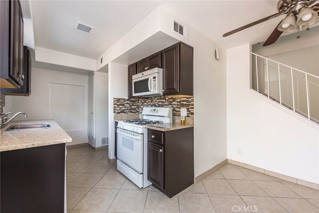 Upgraded desirable end unit starter home. This two-story townhome consists of 3 bedrooms, 2.5 bathrooms and 1,192 sf of living space. The downstairs includes a living room with dual-pane windows, tile floors, fireplace, updated cozy kitchen, with eating area and slider to outside patio area, laundry room and .5 bath off of kitchen. The upstairs consists of the Master Bedroom and upgraded Master Bath, 2 additional bedrooms and upgraded .75 hall bath, in addition to new faux wood tile flooring. Other features include 1-car garage central heating and air-conditioning, Association pool and clubhouse.