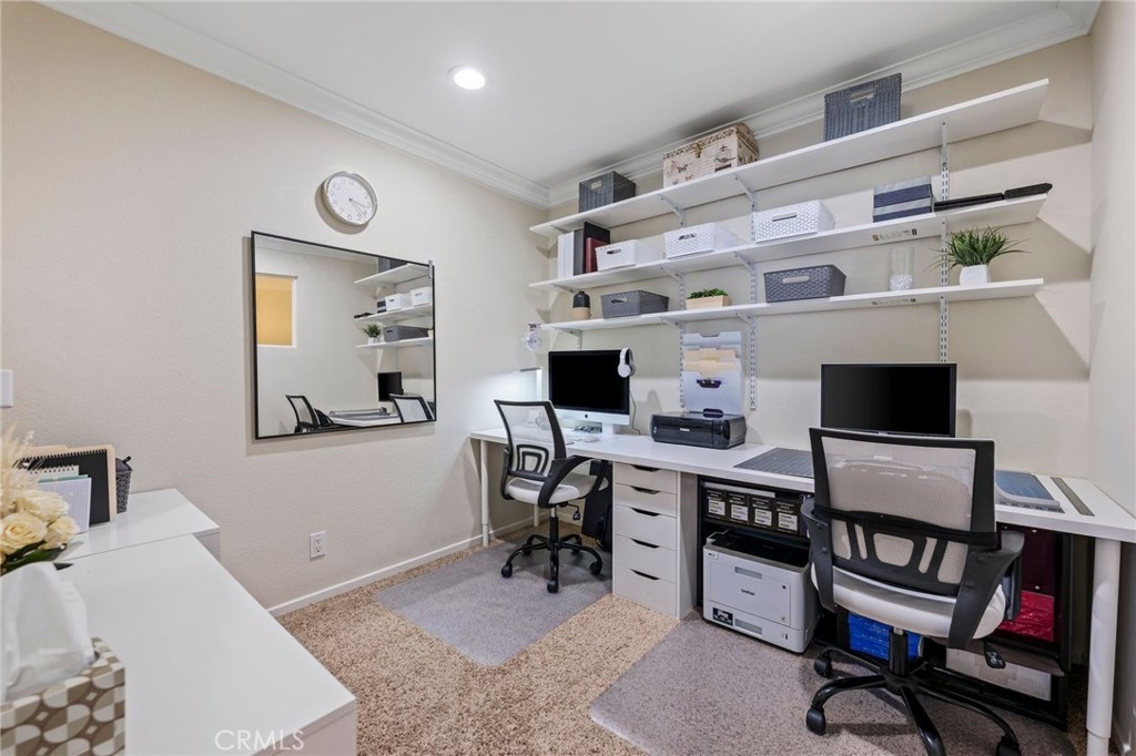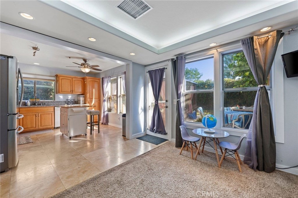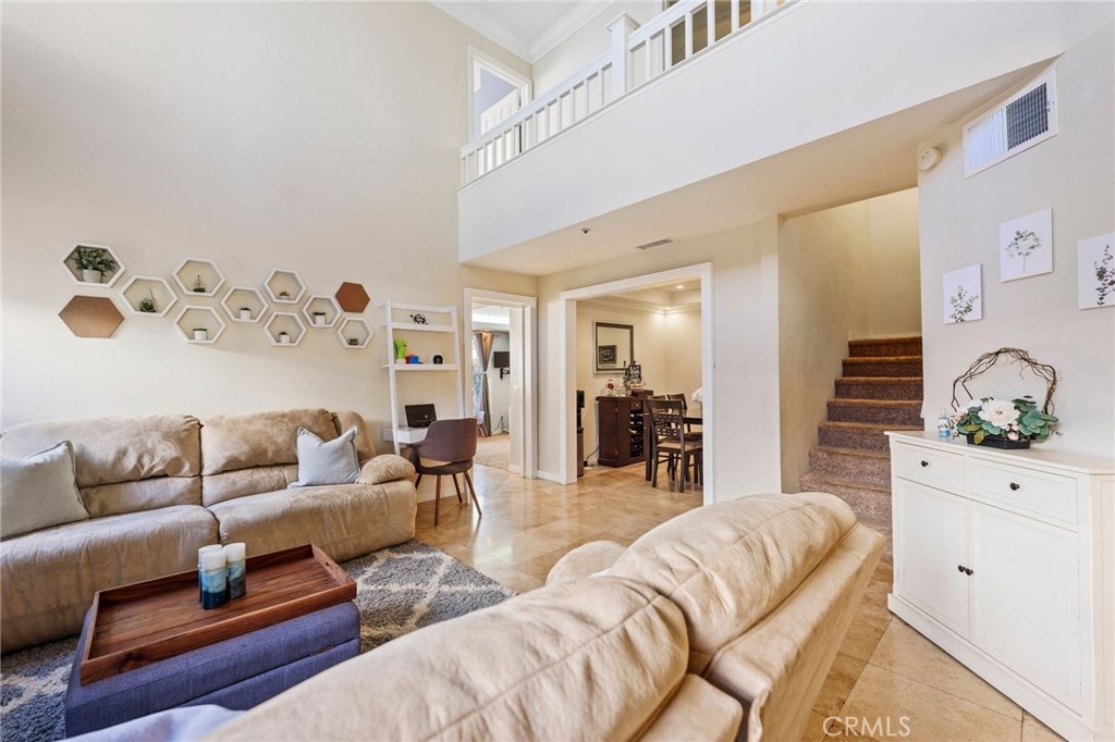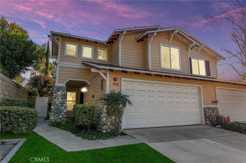 Extremely desirable property in the gated community of Heritage Place is the perfect place to call home. This beautiful 3 bedroom 2.5 bath condo also features a bonus room upstairs that is perfect for a home office or kids' play area. The entry of the home leads you into a spacious living room with vaulted ceilings with an array of natural light coming from all the large windows. The formal dining room has a tray ceiling with recessed lights, and offers a large storage space off to the corner. The kitchen is located towards the back of the property and features wood cabinetry, granite countertops, and views of the large backyard that is perfect for entertaining. All bedrooms are upstairs with a Jack-and-Jill shared bathroom between two rooms. The master en-suite offers high ceilings, attached bathroom with tub/shower combo, and a spacious walk-in closet. Separate laundry room upstairs is convenient and efficient. Other notable features of this amazing property includes an attached 2-car garage with direct access, central AC/heat, new water heater, and newer interior paint. The HOA amenities include a large community pool, basketball court, and children's playground - all within walking distance. The property is conveniently located between the 5, 91, and 57 freeways, as well as nearby the Anaheim Packing District. Rarely on the market, this special home will not last long!