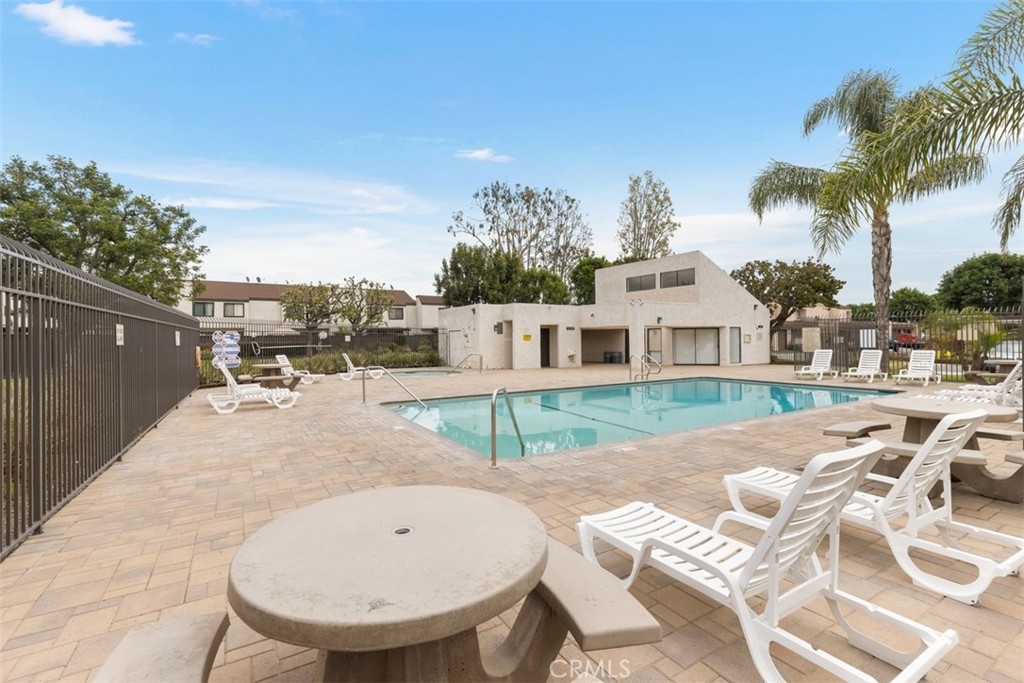 HOT-BUY In Heritage Village! This is a Fantastic single-story end unit that features a 2 car garage with a 2nd level storage room on a cul-de-sac! This attached Single Family property feels airy and spacious with its 2-story vaulted ceilings, formal living room with cozy stone fireplace with mantle & hearth, dining area off spacious kitchen with counter bar, private fenced back yard with covered patio areas, spacious primary suite featuring mirrored closet doors with ensuite bathroom, front courtyard entry into the unit with luscious green belt area with garage access. The HOA includes a community Pool and Spa, clubhouse, nicely maintained grounds with green belt and covers both water and trash. Close to freeway, schools, shopping, dining, Anaheim Resort area. Currently, the only property available in Heritage Village. This won’t last long, RUN to this wonderful home! **Check out the Professional photos, Floor-plan, 3D Matterport Video!**