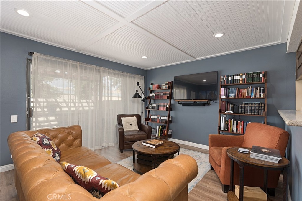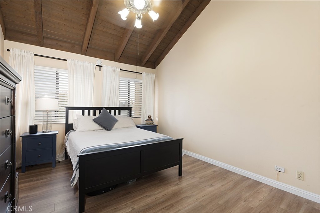 Incredible opportunity to own a remodeled home with fantastic income potential. Located walking distance to Disneyland with great freeway access, this two bedroom property offers a large front patio area, an indoor laundry room & oversized one car garage. Upon entry, you are greeted by wood/vinyl flooring that is consistent throughout the home, painted white tongue and groove ceilings & recessed lighting that operates on smart home technology. This home has sophisticated designer elements throughout. Dim lighting over the custom wood bar & brick veneer accents highlight the entertaining areas. Your kitchen features upgraded cabinetry, stainless steel appliances, granite countertops & an open concept flow to the spacious family room. Through sliding glass doors, you exit to the private patio showcasing a covered pergola & mature trees. A half bathroom down for guests and a full laundry room with built in pantry shelving are tremendous added benefits to the home. Traversing upstairs, you will be pleasantly surprised by the master bedroom with beamed vaulted ceilings & a walk in closet. Your full bathroom up has been renovated to include travertine flooring, stone shower surround & an updated vanity. The guest bedroom offers a very comfortable amount of square footage and storage. Additional features include: Recently installed furnace, AC & water heater. HOA amenities include: Pool, spa, clubhouse, green belt & playground. The entire community is going through exterior updates!