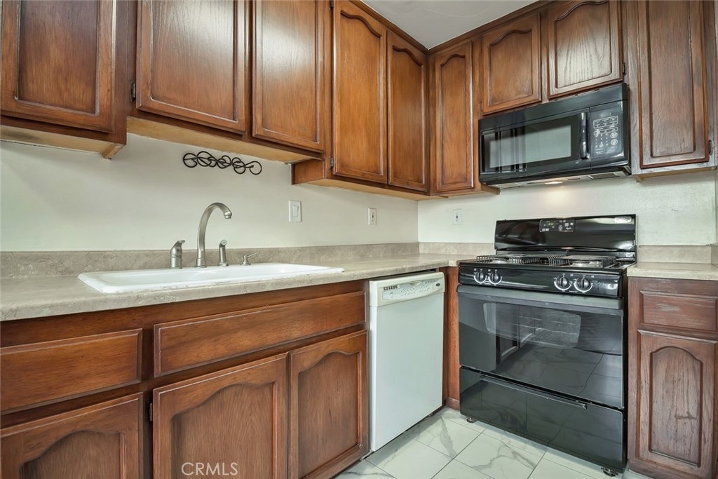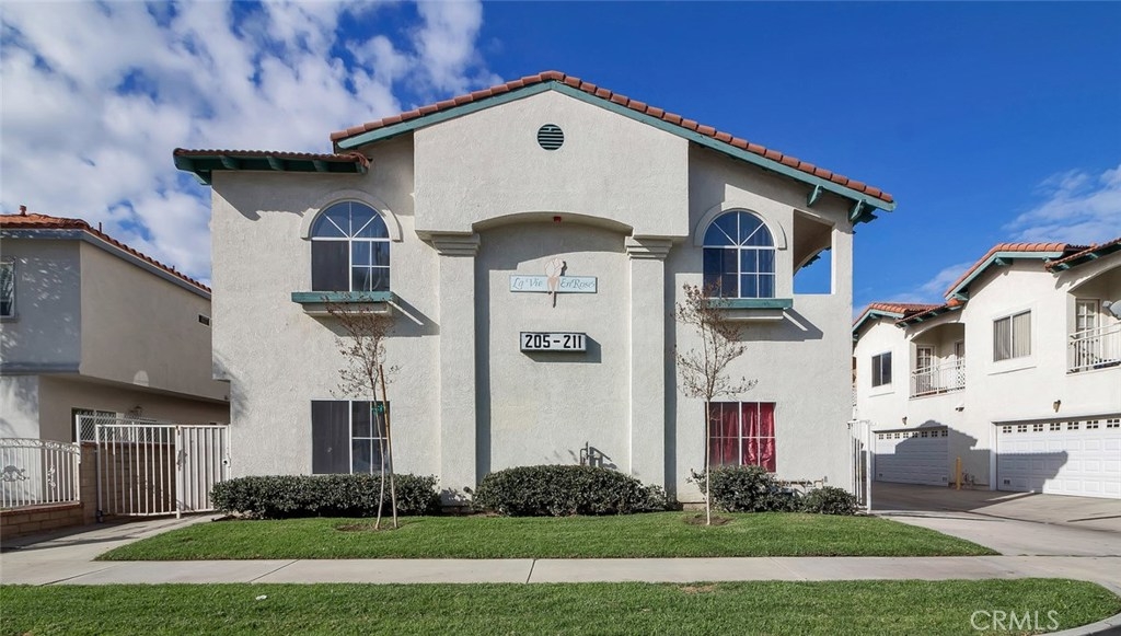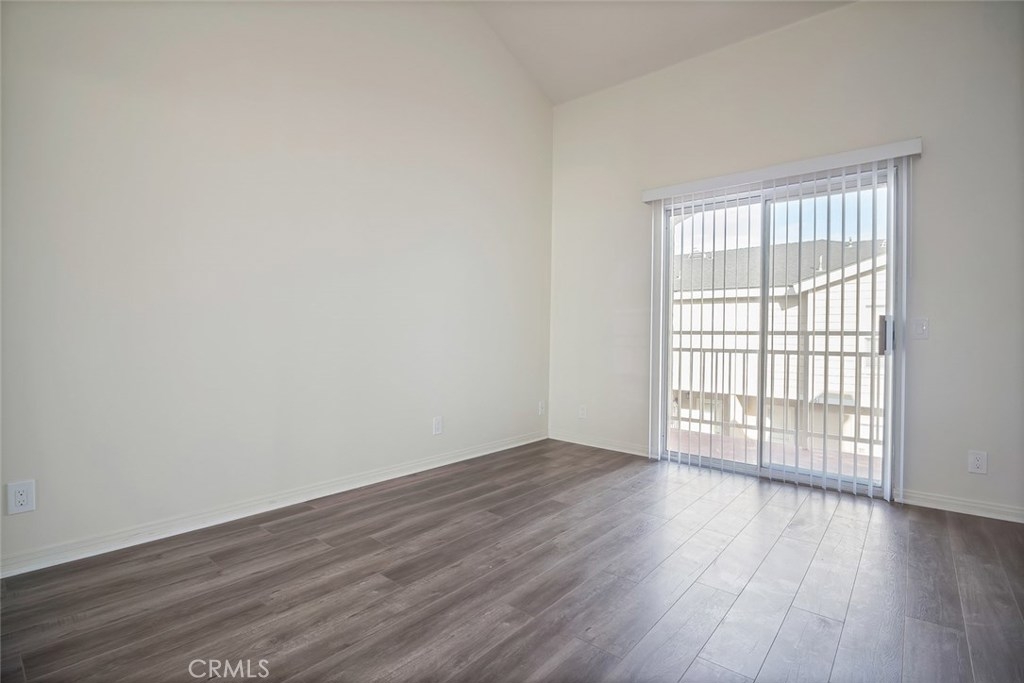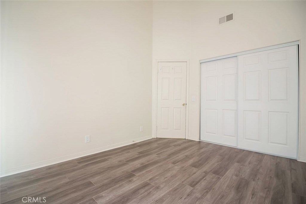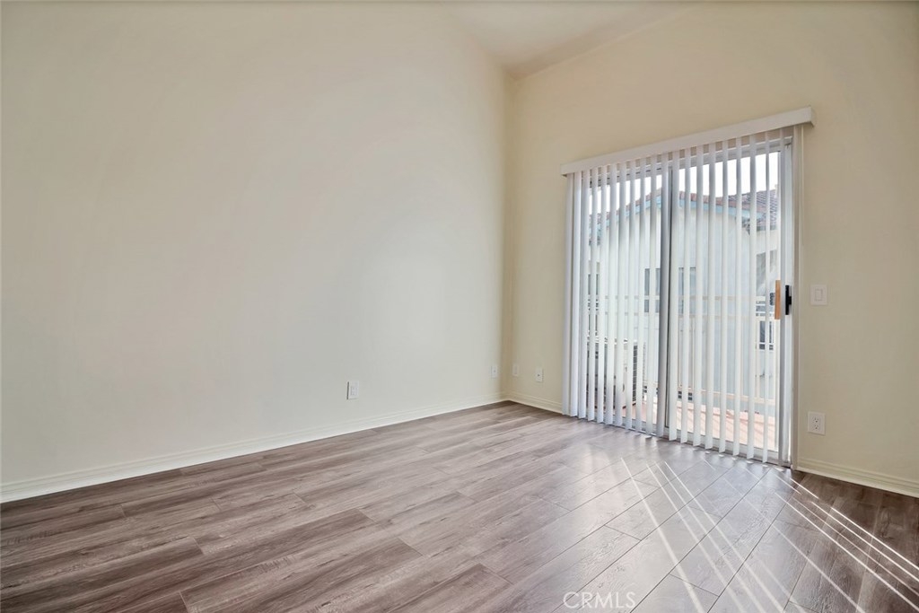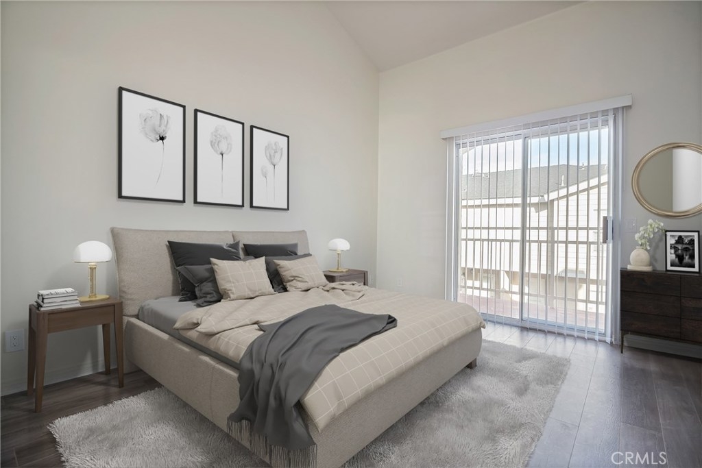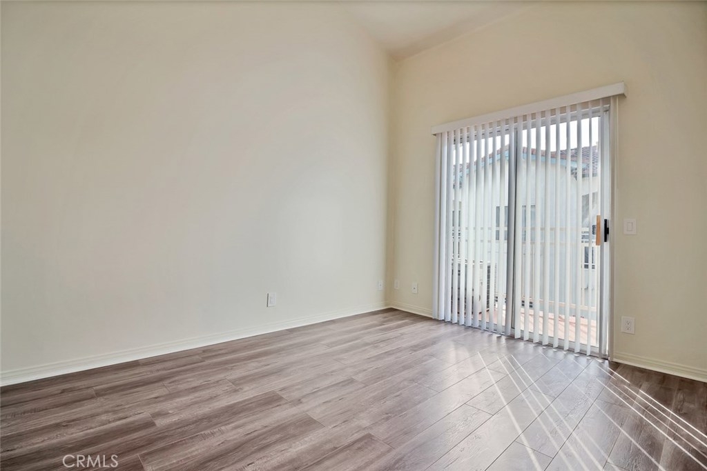 This light and bright two-level townhome is located in a gated community with community pool, spa and barbecues. Lots of windows for natural light, fresh interior paint, and newer distressed laminate wood flooring on both levels. Enter on the first level into the living room which offers an elegant fireplace and dining area with ceiling fan and window. The kitchen is off the dining area and has refinished cabinetry, a built-in microwave and brand new dishwasher and garbage disposal and newer stove. Master bedroom with built-in bookshelves, high ceilings, mirrored wardrobes and a sliding glass door that opens to private balcony. The master bathroom has a dual sink vanity. The two-car garage can be accessed directly from the interior and has laundry hook-ups.