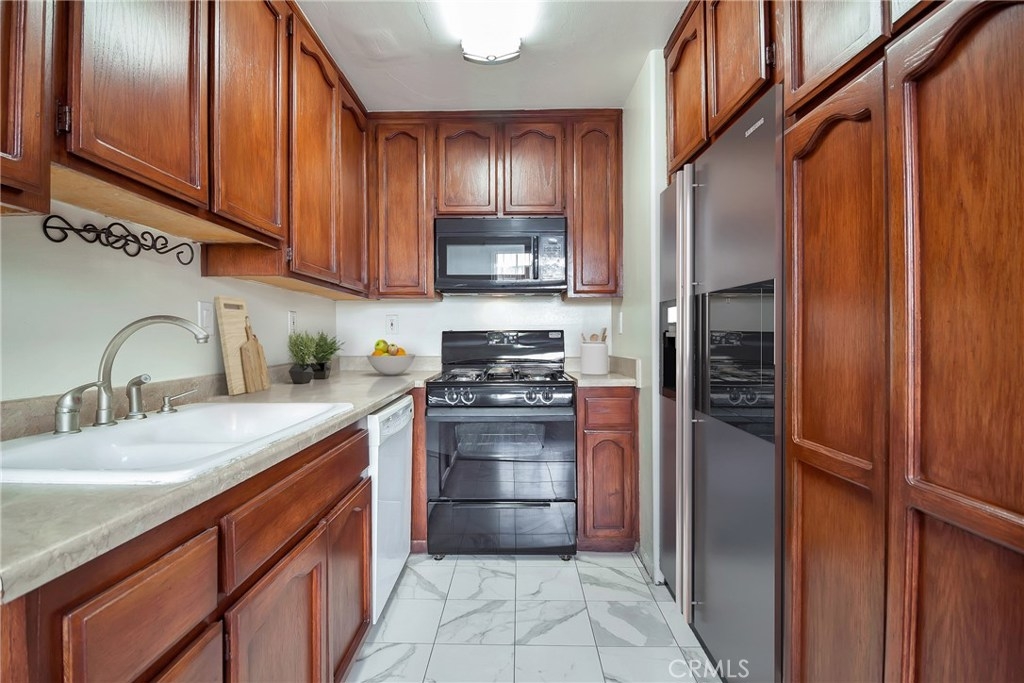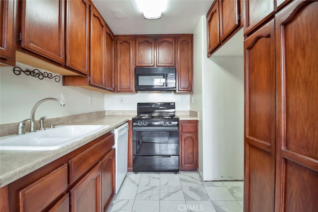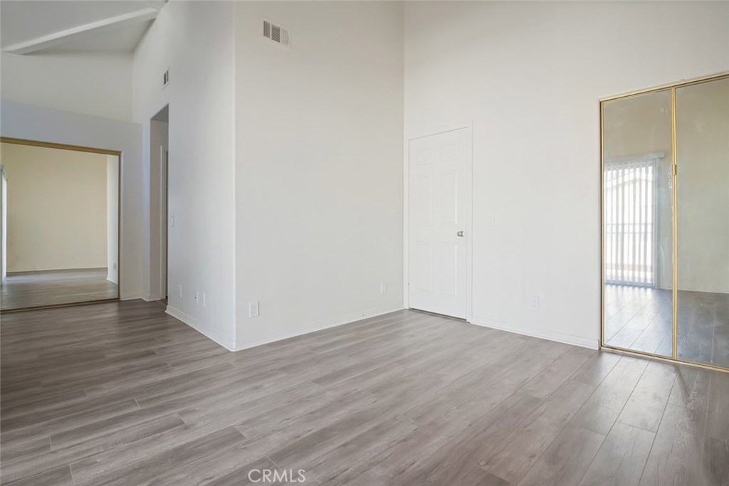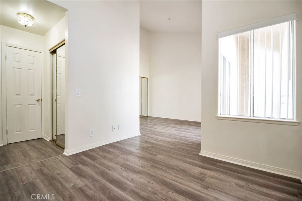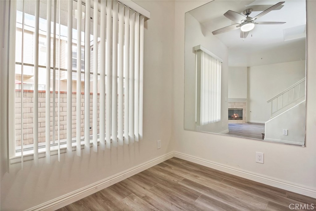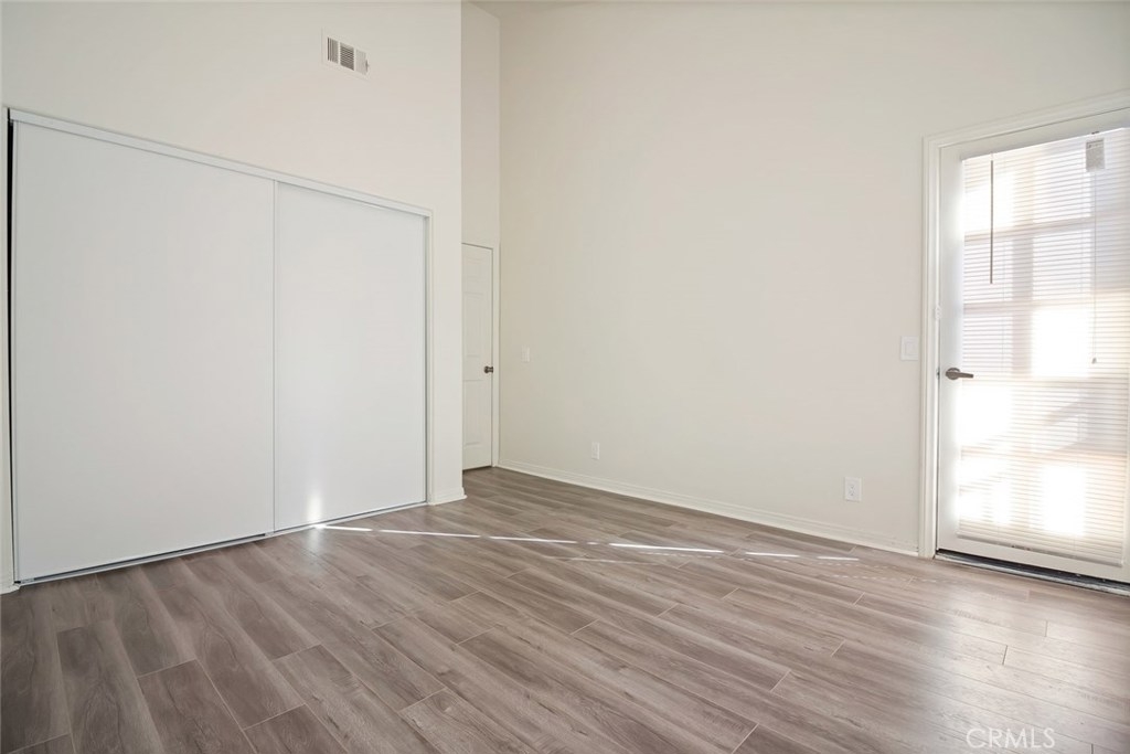 This light and bright two-level townhome is located in a gated community with community pool, spa and barbecues. Lots of windows for natural light, fresh interior paint, and newer distressed laminate wood flooring on both levels. Enter on the first level into the living room which offers an elegant fireplace and dining area with ceiling fan and window. The kitchen is off the dining area and has refinished cabinetry, a built-in microwave and brand new dishwasher and garbage disposal and newer stove. Master bedroom with built-in bookshelves, high ceilings, mirrored wardrobes and a sliding glass door that opens to private balcony. The master bathroom has a dual sink vanity. The two-car garage can be accessed directly from the interior and has laundry hook-ups.