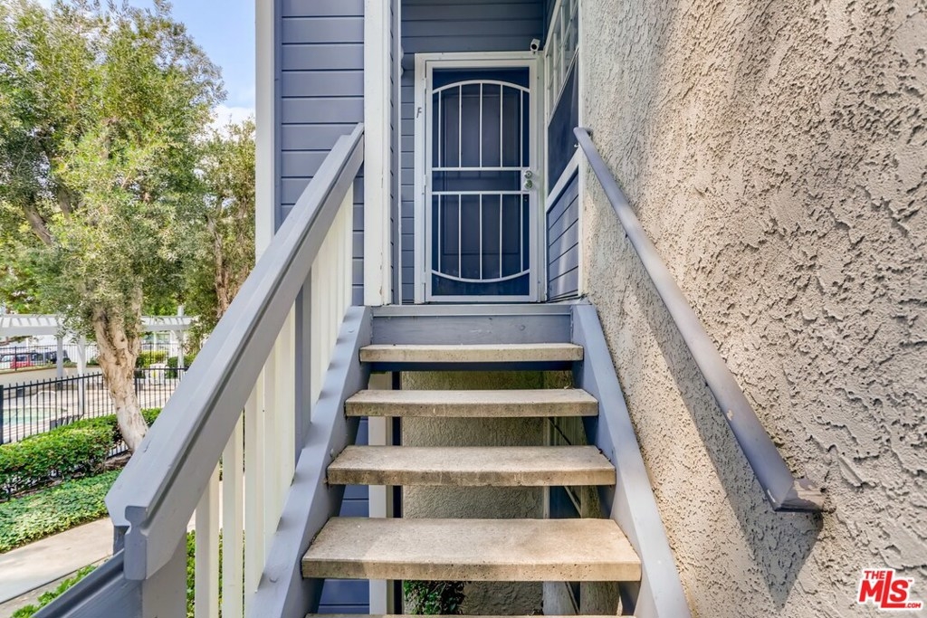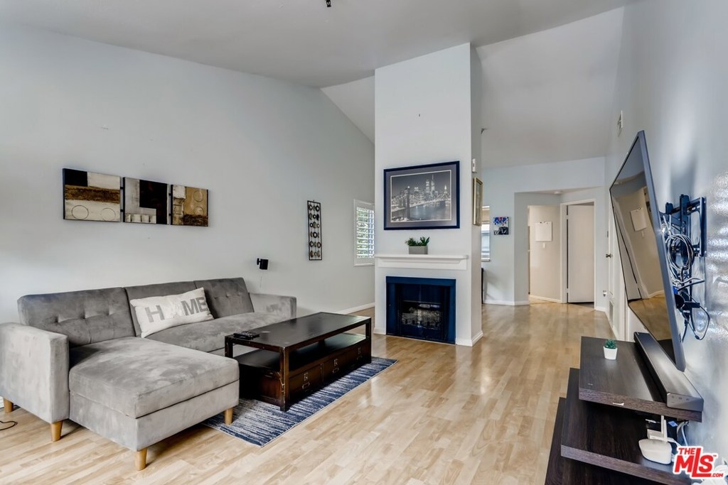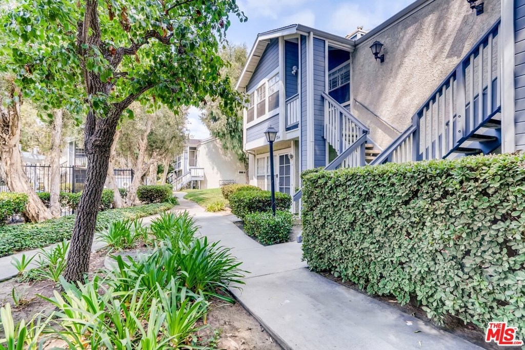 PRICED TO SELL! WON'T LAST! Welcome to your beautiful, bright and spacious 2 bed, 2 bath upper end-unit condo with high vaulted ceilings and an open floor plan in southwest Anaheim! Prime, desirable location in a quiet and private neighborhood surrounded by single family homes and it's on a cul de sac with a greenbelt beside it and close to the spa/ jacuzzi. This condo features a cozy fireplace in the living room, laminate wood flooring in living room and dining room and tile flooring in the kitchen, custom poly-plantation shutters on the windows, recently renovated bathrooms, central A/C, private laundry area in unit balcony, newer water heater, recessed lighting, vaulted ceilings, huge master bedroom, and a pocket door to a private second bedroom and bathroom. The 2-car detached garage (#24) has a newer garage door and lots of built in shelving and storage. You'll enjoy this quiet community nestled among beautiful trees and lush landscaping. Great location within close proximity to shopping, restaurants, schools and parks. HOA covers water, trash and sewer. Perfect as a starter home or a rental/ investment property. Come see this gorgeous property and submit your highest and best offer before this property is gone!