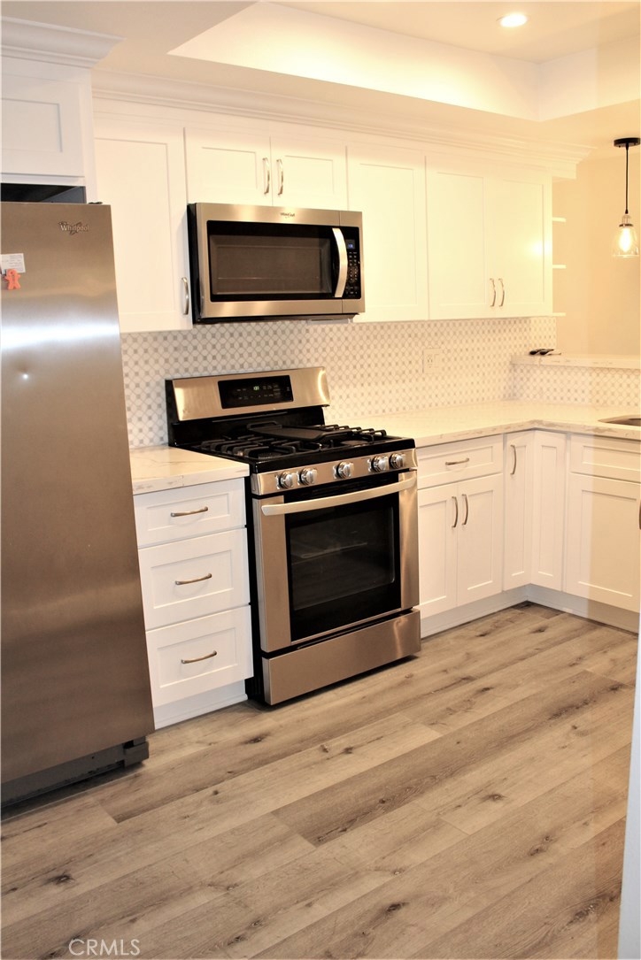 This is a fantastic ONE STORY Townhouse in sought after Norwood Village with low HOA!!! This End Unit was completely remodeled 2 yrs ago! 2-Car garage, private grassy area right out front door as well as a large cement wrap around patio with pergola covered space. New Dual Pane windows with Custom blinds throughout! Spacious Living Room with Fireplace & Built-Ins! Recessed Lighting throughout! Open to large Dining room with Breakfast Bar! Beautiful Remodeled Kitchen with Stainless Appliances, Quartz Counters, Soft Close Drawers, Lots of counter & Cupboard Space! Attached Laundry Room with Storage, folding & hanging space! Designer Paint Colors & laminate flooring throughout living Dining, Kitchen & Hall! 2 large Sliders leading out to large private patio with storage shed! Large Master with large Double Mirrored Closets & Private Full Bathroom Beautifully remodeled top to bottom with designer paint, tile, flooring, vanity, fixtures & Custom Shower doors! Ample secondary bedrooms with mirrored closets! Full Main Bathroom has also been redone top to bottom equally as beautiful & custom! This well-kept complex features a huge pool/spa area with Bathrooms & covered lounging area. Close to All Anaheim has to offer! Walk to dining & shopping! Walk to Anaheim Regional Hospital! Close to Schools, Parks, Public transportation! 4 mi to Disneyland & Knott's Berry Farm! 2 mi to Anaheim Packing District! 6 mi to Angel Stadium! Conveniently located between the 5, 91, 57 & 22 fwys!