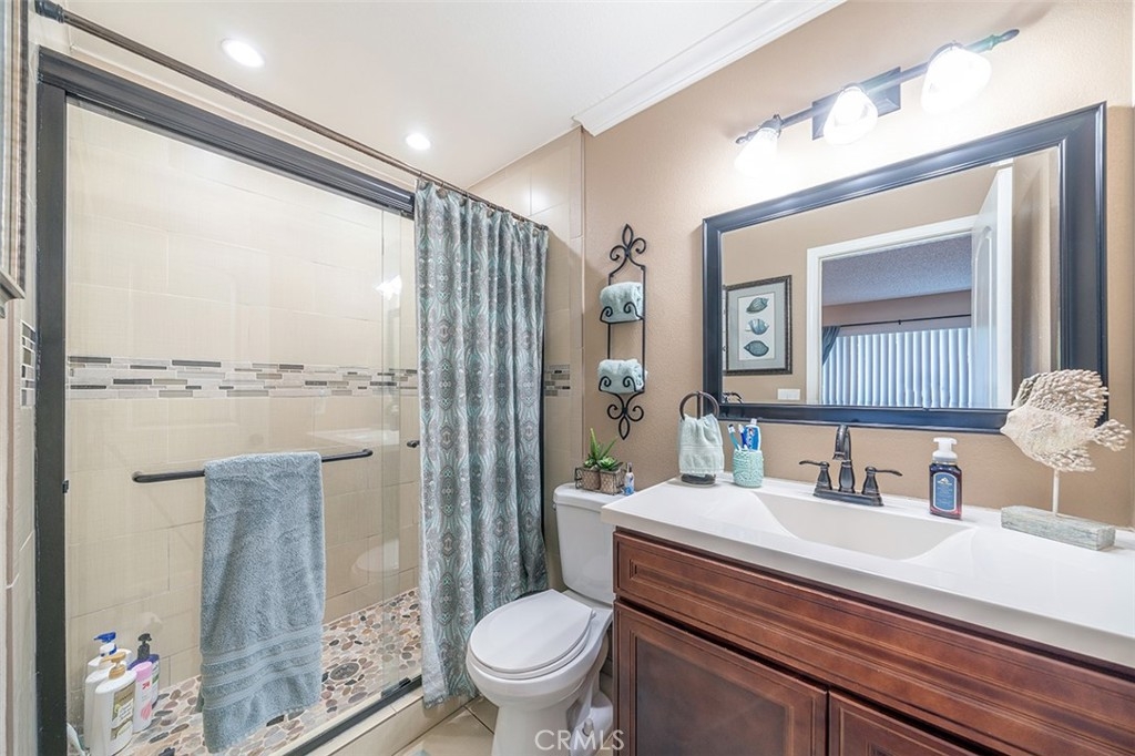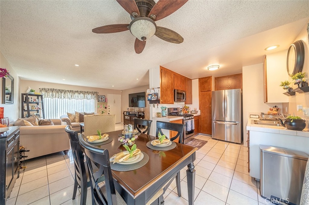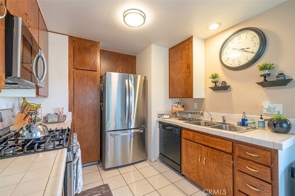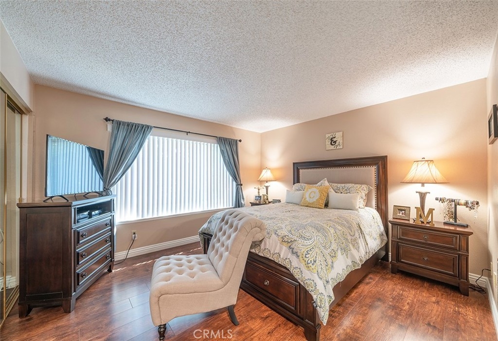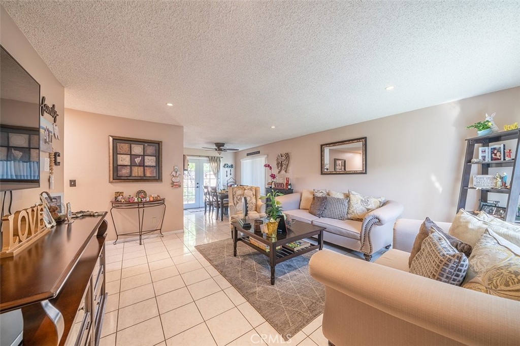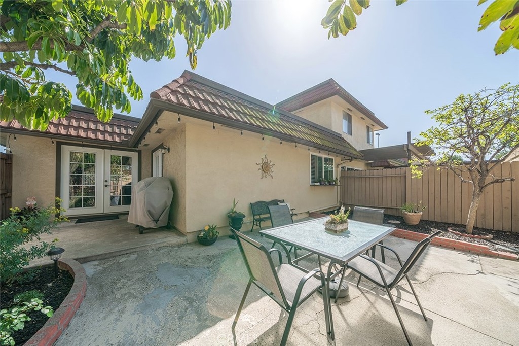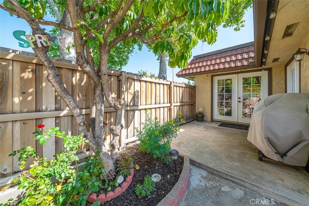 Charming end unit in the Parkdale Townhomes. This very well maintained unit has 3 bedrooms 2 bathrooms, two car garage with new garage opener, master bedroom was recently remodeled. Bathroom, bedroom and two closet doors were replaced, also two French doors were installed, new dual pane vinyl windows, ceramic and laminated floors, crown molding in one of the bathrooms, an inviting sized patio great for entertainment, with new fencing, and fruit trees which is off the kitchen. Brand new microwave and free standing range. Another improvement is the newer water heather. This unit has an amazing view to a green area from the dining room window. The association recently replaced roof and painted outside, complex has a club house and community pool, low association fees, recessed lighting in the living room, and new light fixture in hallway. Just a fence separate this unit from the near park. Close to freeways and within minutes from the Buena Park mall.