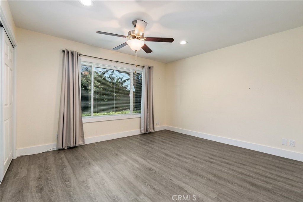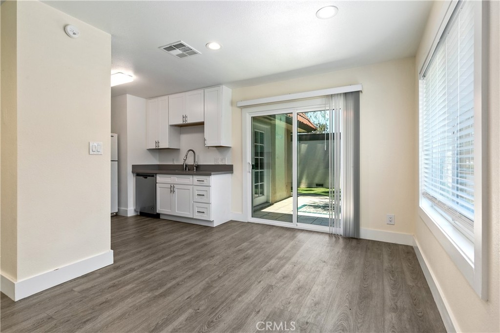 Welcome to your 3 bed 2 bath 1,096 square foot home nestled in the heart of Anaheim yet steps away from Buena Park. Close to 5 and 91 freeways, miles away from shopping centers and a short walk to Buena Park Mall. Turn the key and step into a completely upgraded interior with an open floor plan, living room and dining room adjacent to the kitchen which has quartz countertops and sliding glass door leading you to the backyard which has grass and concrete slab perfect for summer BBQing. New laminate flooring throughout. Hallway leads to bedrooms all large in size with custom built in closets. One of the bedrooms has double French doors leading to the patio.