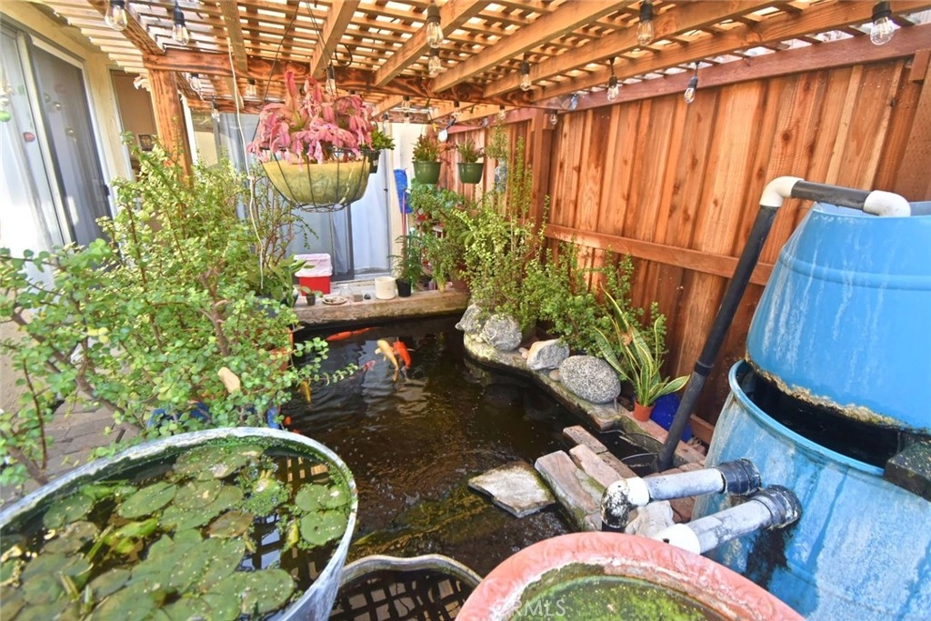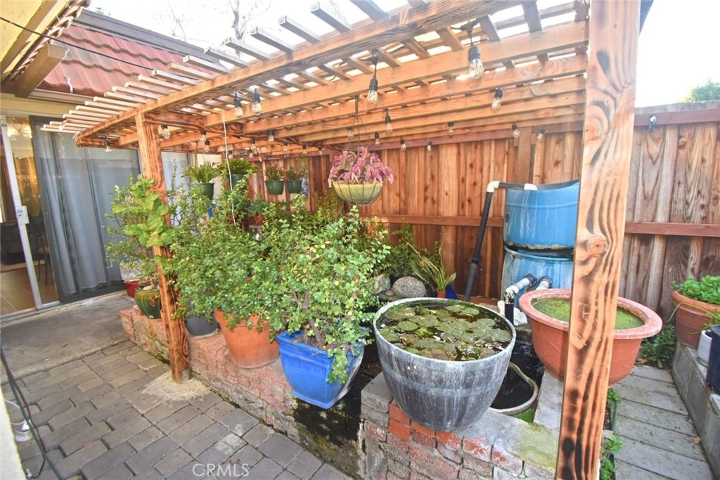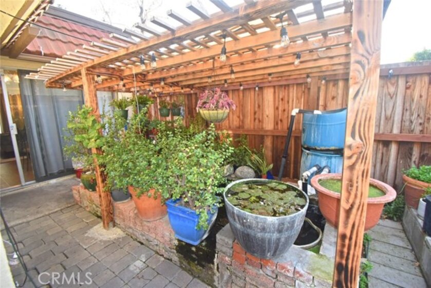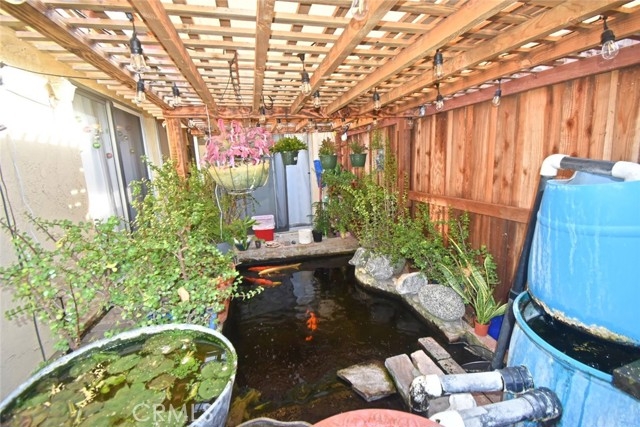 Wonderful One Story Condo (No-one-Below/No-one Above) with multiple parking spaces (as the house is located at a corner/cul-de-sac) along with a 2-car garage, which can be accessed through the house's own garden (3,114 sqft) directly leading to the kitchen. 3 bedrooms & 2 bathrooms. Spacious living room. Charming kitchen with dining area looking directly out into the garden, which features a beautiful koi pond under a nice patio for one's enjoyment. You will have lots of space to plan for potential landscape or fruit trees. New water heater & disposal installed. Low HOA fee, NO security gate, large community swimming pool, very quiet area, beautiful park, near market, stores,shopping center, downtown and much more...