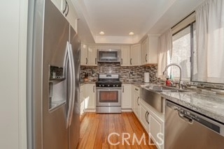Charming 3 Bedroom/3 Bathroom Pepperwood Village Home located in Anaheim, Ca. The home offers a fully remodeled designer kitchen with bamboo flooring throughout this 2 story home. The Master bedroom has a walk-in closet and its own bathroom. It features many upgrades to include 2 full bathrooms. Each unit has staggered walls and 2 car detached garages. The community is closed to Disneyland and many Southern California attractions. This one could be yours!