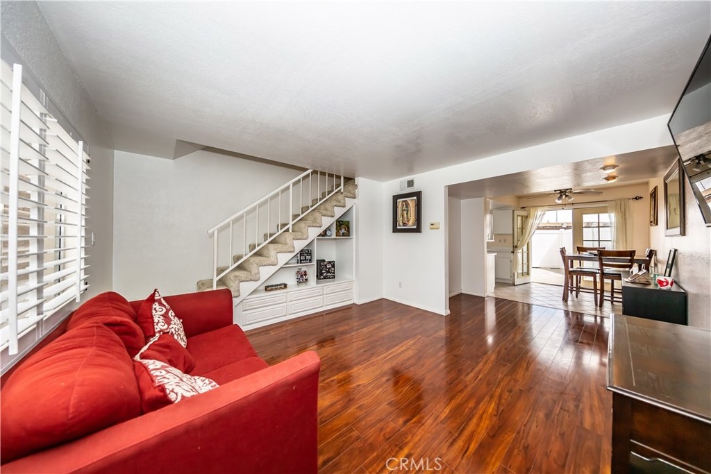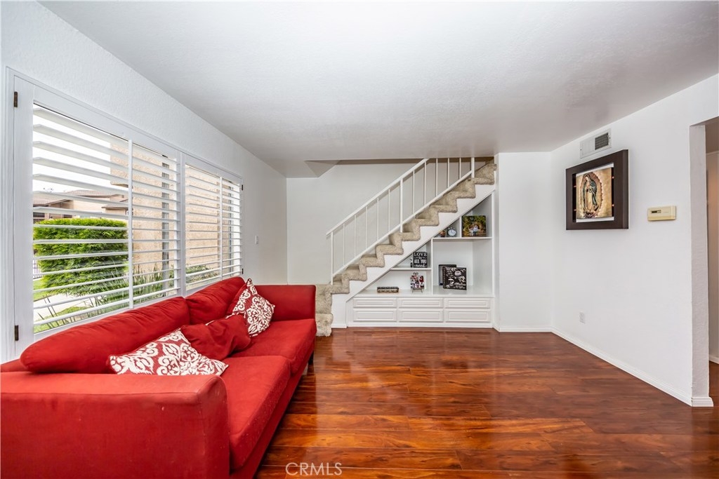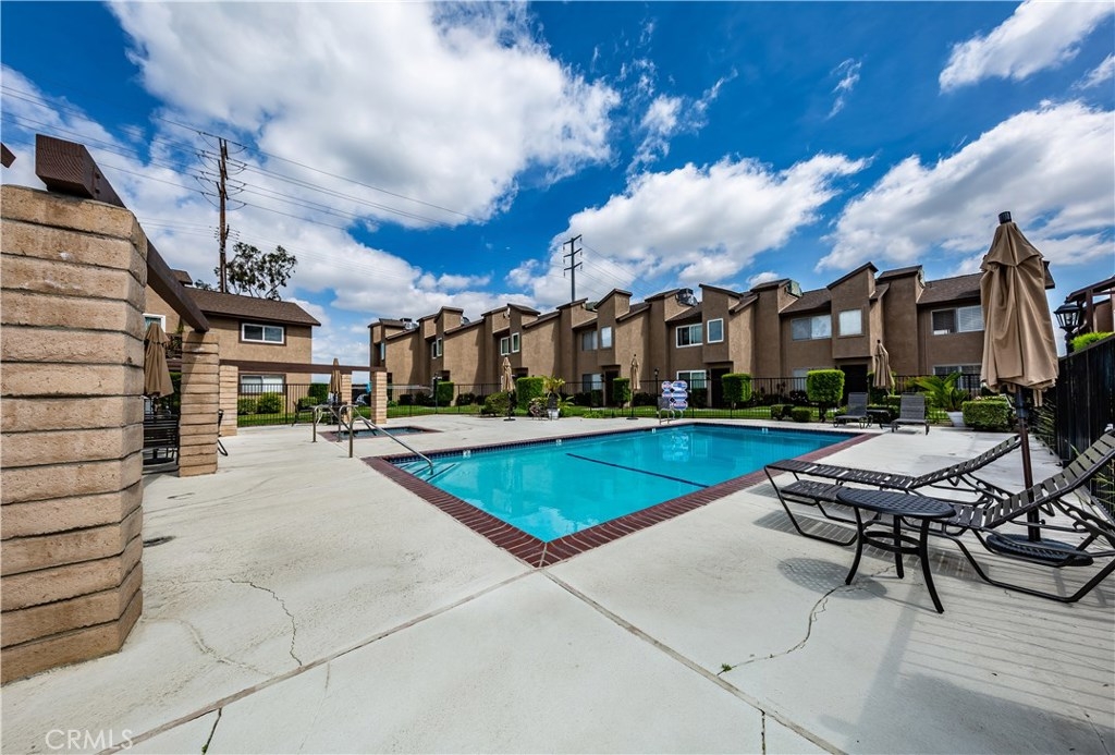 Welcome to the charming "Pinetree Village" community. As soon as you walk into this bright and airy townhome, you begin to feel a warm home feeling. You will immediately notice the beautiful laminate wood flooring throughout the living room which features built-in shelves under the staircase. The living room is very spacious and has a lot of natural light coming in from the big windows. Head on over to your bright and spacious kitchen where you'll find all newer appliances -- that were replaced 3 years ago-- white cabinets, and stainless steel sink. Also featuring on the bigger patios in the whole community where you can find a built-in BBQ perfect for entertaining and comes with its own gas line! Talk about convenience! Brand new waterproof laminate wood flooring has been installed both the bedrooms with a 10-year warranty. Both also have ceiling fans and newer paint. There are also plenty of great amenities in your community such as a pool, clubhouse, and laundry very close-by. The community is under new property management which has replaced the roof 2 years ago, newer paint and will be updating the laundry & clubhouse. Conveniently located near Eisenhower Park, Grocery Stores (Vons & Walmart, Target), Restaurants (Denny's, Olive Garden, Red Robin's), Schools, and Entertainment. Don't miss out on this rare opportunity!