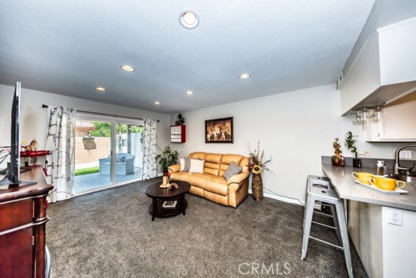 Welcome to the desirable home in the gated community of Ponderosa Meadows. Upon entry, the private gate leads you through the front courtyard. At entry, you're greeted with an open floor plan, high ceilings, and great natural lighting. The kitchen features quartz counters, stainless-steel appliances such as a dishwasher and stove with double ovens, updated kitchen cabinets, and pantry. You will find the cozy family room next to the kitchen with carpet flooring and sliding glass door leading to the backyard. The spacious living room features vaulted ceilings, fireplace, and fabulous modern flooring that flows into the dining room area, and guest bathroom. The large backyard features a large covered patio and artificial grass for easy upkeep. Continuing upstairs features the spacious private master suite with wall to wall, two-tier closets perfect for sharing. The master bathroom has his and hers sinks separated by a large counter space, shower and tub, and an enclosed private toilet room. Down the hallway are the two additional roomy bedrooms separated by a full bathroom, and linen cabinets. Two car garage with direct access through the laundry room. Upgrades include newer sliding glass doors and windows, flooring, baseboards, recessed lighting, and interior and exterior paint. The association host a sparkling pool and spa, along with ample guest parking. This spectacular home is centrally located near Disneyland, shopping, restaurants, schools, freeways, and more.