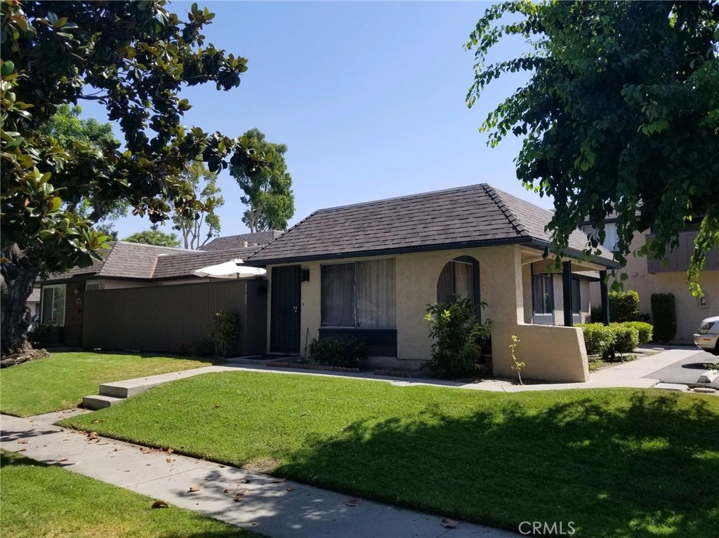 Great location on a cul-de-sac, this single story end unit with no one above has an enclosed patio for relaxing in privacy or BBQ. Walk to association pool and refresh or exercise swimming. 3 Bedrooms, 2 baths, Master bedroom has it's own bath. Laminate flooring, custom color paint, easy access from street with green grass in front just like a front yard. Detached private garage.