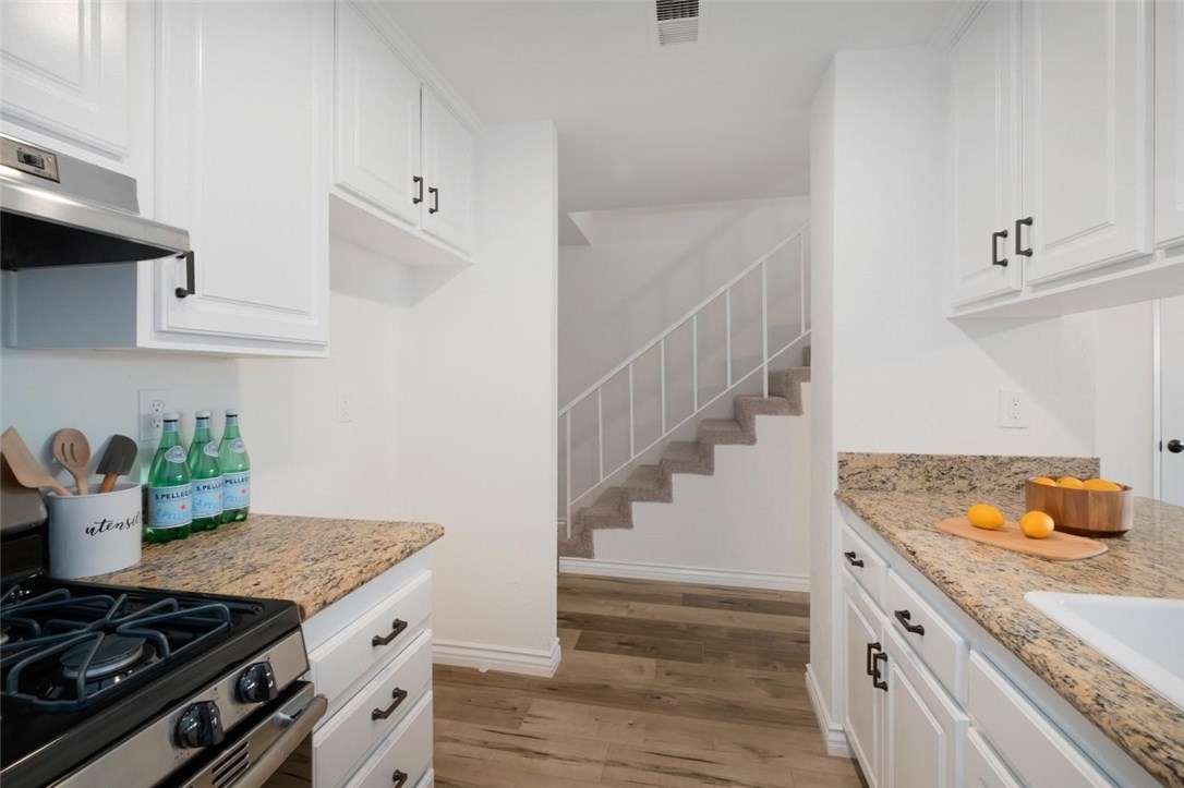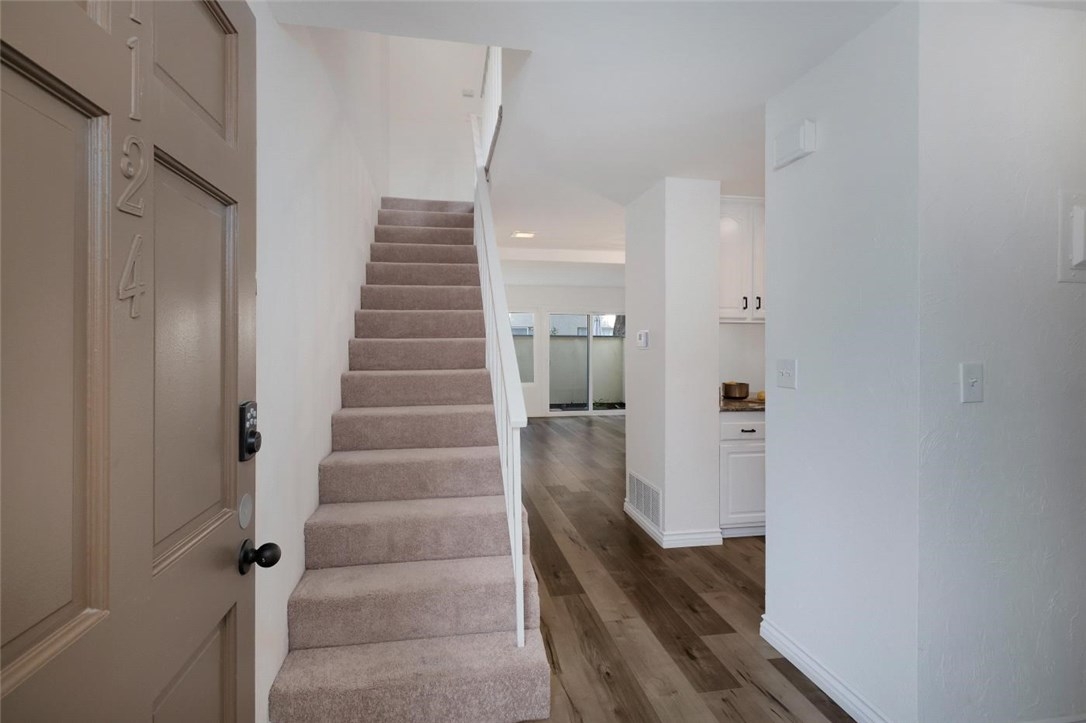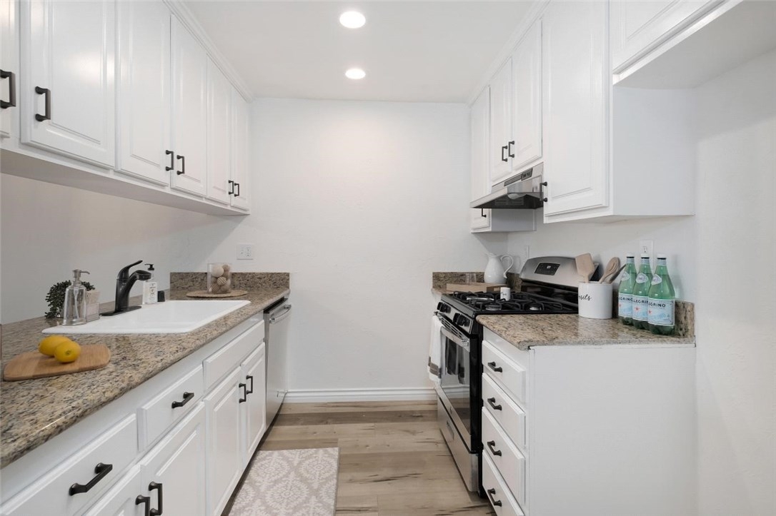 Highly desirable condo located at Ridgeway Park East in Anaheim. This unit has been recently updated with laminate flooring that flows throughout the unit complimented by the modern neutral-tone paint scheme. Kitchen boasts white shaker cabinets, granite countertops, and stainless steel appliances! The bedrooms are complete with plushed carpeting and ceiling fans. The bathrooms have been upgraded with vanities, lights and mirrors to add that special touch. Dine al fresco in your patio area outback, and enjoy the breeze. Additional features include, single car garage and parking space in the front. In close proximity to The Honda Center, Angel stadium, Disneyland, multiple freeways and so much more. Request your viewing today! Sure to sell FAST!!!