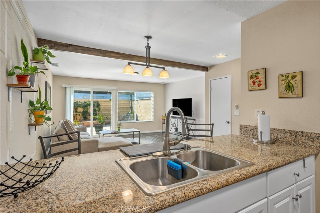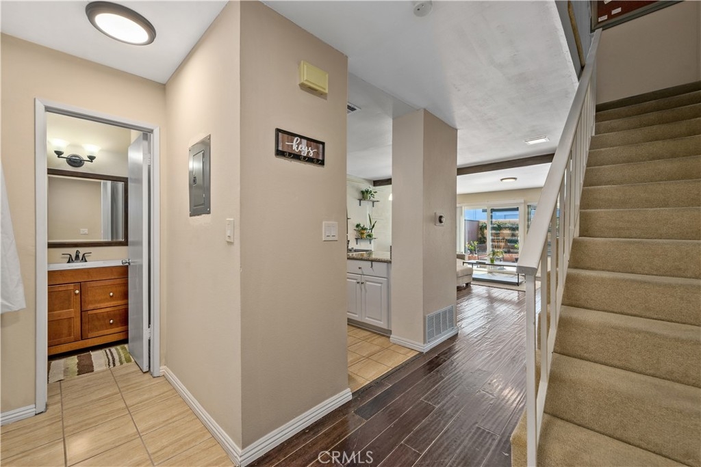 Bright and open two-story condo home now available! This end unit features a very comfortable floor plan and tasteful updates throughout. Open living and dining off the kitchen, oversized private patio, with convenient half bath and designated laundry area on the main floor. Upstairs are the master bedroom with adjoining bathroom, and an additional pool view bedroom, both with generous closet space. Direct garage access makes this home even more perfect and is a rare community feature. Additional assigned parking space included. All this plus a new HVAC system. Highly convenient location in the desired Southeast Anaheim just 2 miles from the Packing House. Close access to 5, 57, and 91 freeways. This home checks all the boxes you’re looking for. Schedule your appointment today, and get ready to fall in love!