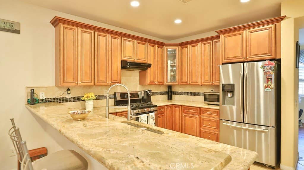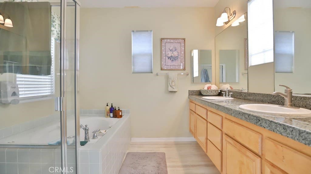 Sellers are motivated to sell. First time on the market!!! Take a look at this two story home with 4 bedrooms and 3 bath. Owner recently added new flooring and stairs. Spacious kitchen has been remodeled with new counter top and cabinet. Open floor plan with kitchen leading into the family room with newly added recess lighting. Property has two fireplace. One bedroom and bath located on main floor perfect for quest or elders. Second floor has 2 bedroom, 1 bathroom, master bedroom, master bath and office area. Master bath has dual vanity, walk in closet, shower, and bathtub. Laundry room located upstairs. Private patio perfect for the family barbecue. Two car attached garage for easy access. Located in a quiet neighborhood near a highly rated high school, Valencia High school. Near to major freeway 91, 57, 5, & 55 for ease of access.