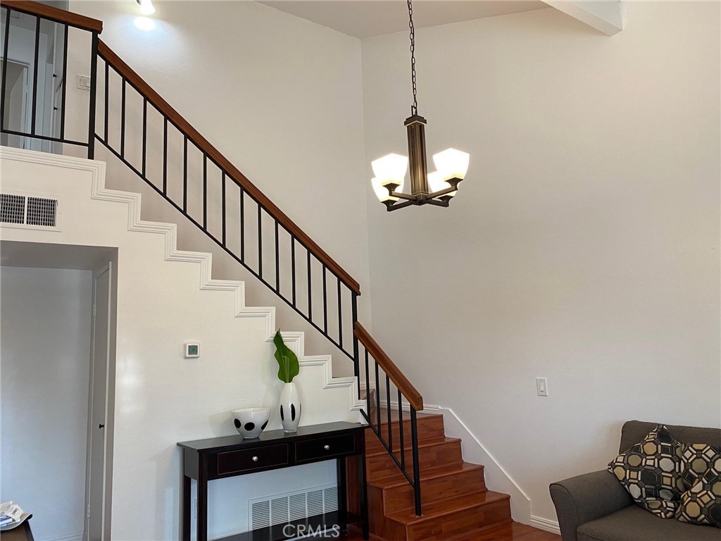 Welcome to the much sought after, Saratoga Community, nestled in the Heart of Anaheim. The updated kitchen features beautiful granite countertops, tile flooring, recess lighting and plenty of cabinet space, dressed in new paint/hardware. Kitchen connects with light and bright dining and living room areas which offers plenty of windows and hardwood flooring. Living area boasts high vaulted ceilings, a custom stone fireplace and contemporary chandelier. Downstairs also includes a newly updated powder bathroom, complete with new vanity, mirror and light fixture. Upstairs are 3 large bedrooms, including the extended master bedroom, complete with new shower enclosure, light fixture and tile flooring. Hall bathroom has also been remodeled with new shower/tub, vanity, toilet and light fixture. Other great features include the direct access 2 car garage which includes washer and dryer, newer HVAC and updated water heater. Not to be forgotten is the amazing front patio, ideal for those family gatherings or just a great spot for that early morning coffee! Saratoga is privately gated, with common areas that include the well-maintained greenbelts, paved and nicely lit walkways, along with a swimming pool and spa area. Centrally located, this property is only minutes from Disneyland, California Adventure, Anaheim Angels Stadium, Anaheim Packing House, Top Rated restaurants, ARTIC Train/Bus Stations and Retail shopping. Schools, library and parks are within walking distance! No reason to look any longer as this home has it ALL!