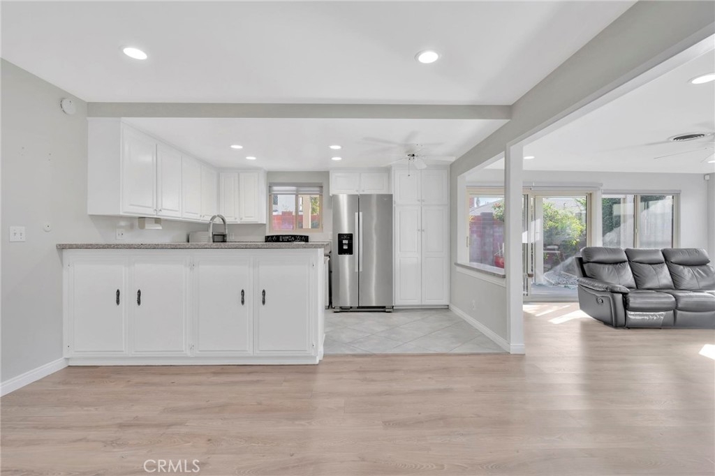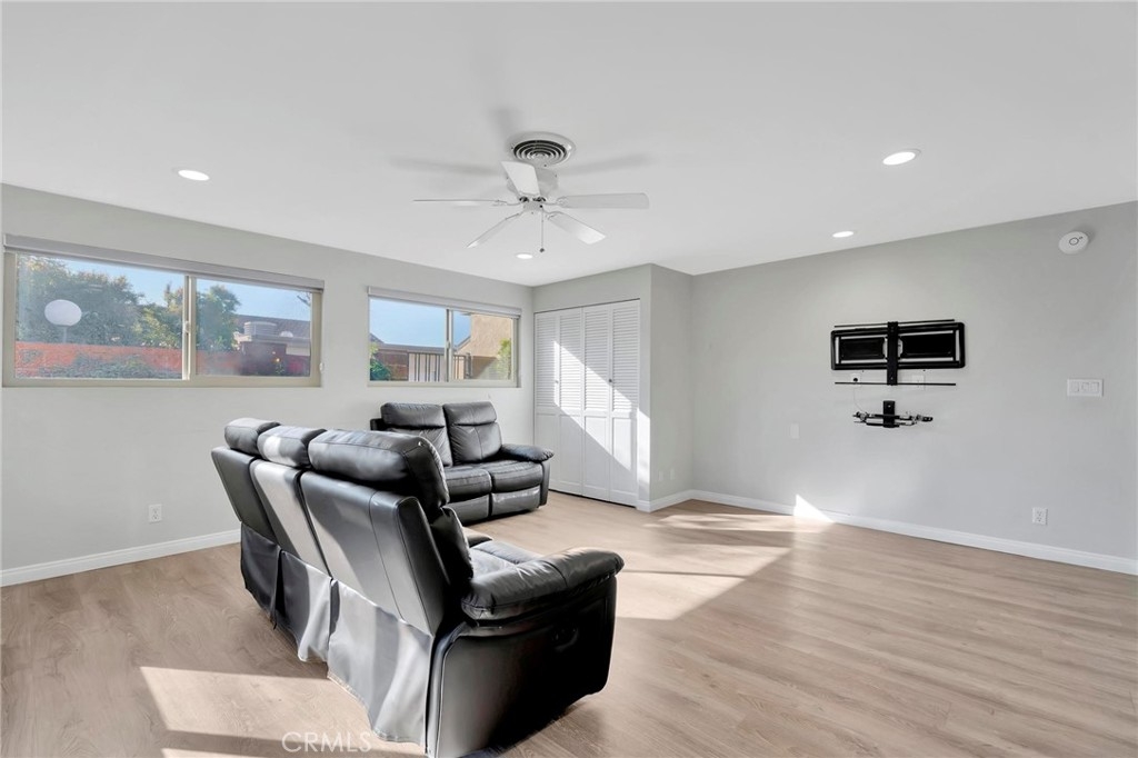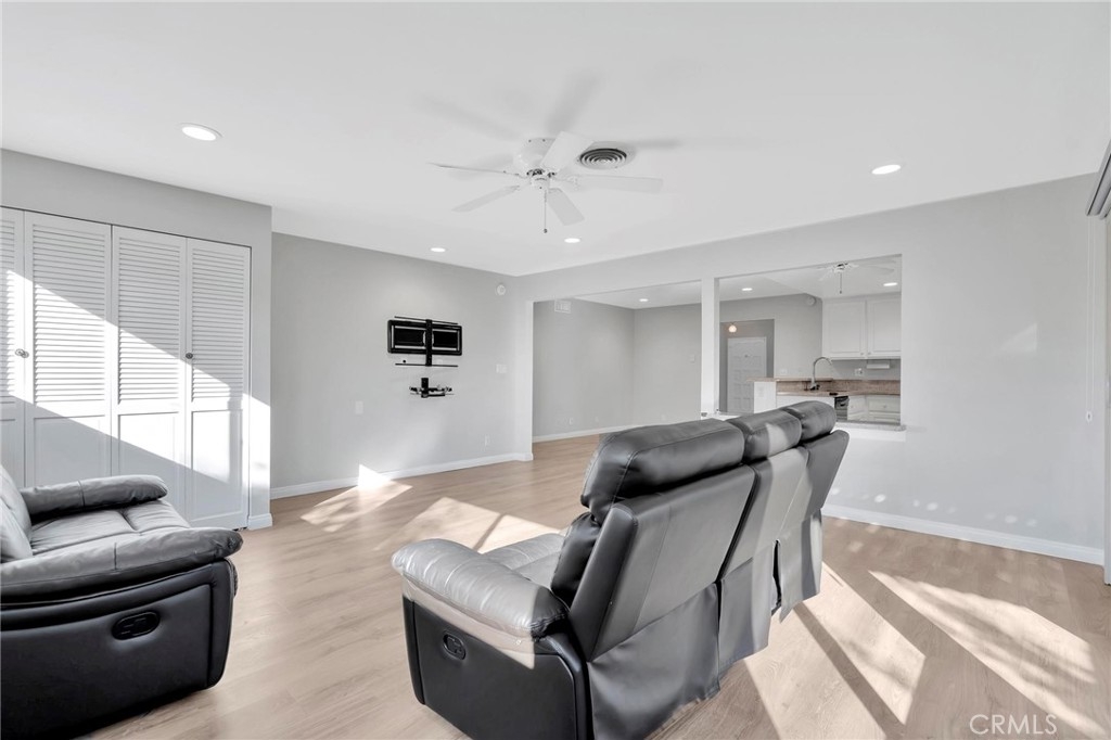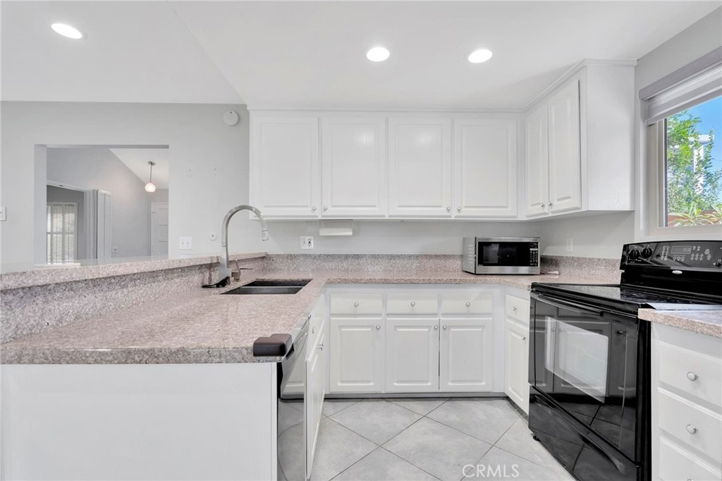 Charming, remodeled 3-bedroom, 2-bathroom condo home with family room, den, and outdoor patio with water feature. Private, corner lot in a peaceful community with great amenities and pool. Over $45k of improvements completed over the past 3 years - remodeled restrooms and kitchen, new appliances, flooring, windows, blinds, and PEX pipping. The living room has high angled ceiling with a gas fireplace and lots of natural light. Remodeled kitchen has granite counters, tile floors, an electric range with oven, dishwasher, microwave, and lots of cabinets. There is an adjacent area by the kitchen for dinning, with opening floorplan to the larger den area, an added bonus that can be used as a second family room or play area. Recessed lighting throughout home. All appliances and washer/dryer are included with the purchase. The master bedroom is good sized, bright, has mirrored closet doors with lots of storage space and a remodeled bathroom. The adjacent bedroom has large closet space, decent size. The third bedroom does not have closet space, and can be used as an at-home office. Ceiling fans in all the bedrooms and den. Large, 2-car garage with washer and dryer, water softener (not connected), and built-in storage closet and racks. The back yard has a patio with awning and beautiful water feature. Convenient location minutes away from the 5 freeway, parks, schools, dining, shopping and entertainment. Close to Disneyland and the popular Anaheim Packing District! Owner will consider leasing for $3,500/month including HOA.
