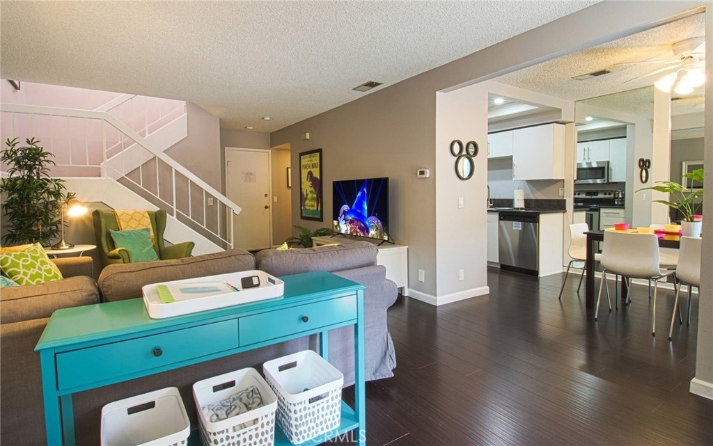 Welcome to your new home in Sherwood Estates! This 3 bedroom, 1.5 bathroom townhouse features a single-family home atmosphere, and is perfect for anyone looking for a close proximity to the Disneyland Resort, and also a short distance to grocery stores, public schools, freeway access, fitness centers, Angels Stadium, and the Anaheim Convention Center. You'll love the clean and updated look of this home, with laminate floors, updated kitchen and baths, and spacious bedrooms. The attached 2 car garage offers plenty of storage space as well as laundry inside the home. Relax on the back patio area after a long day at the parks. The community pool is just a short walk away - perfect for cooling off on a hot day. Close to shops and restaurants, this home has it all!