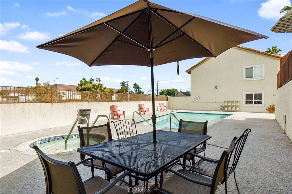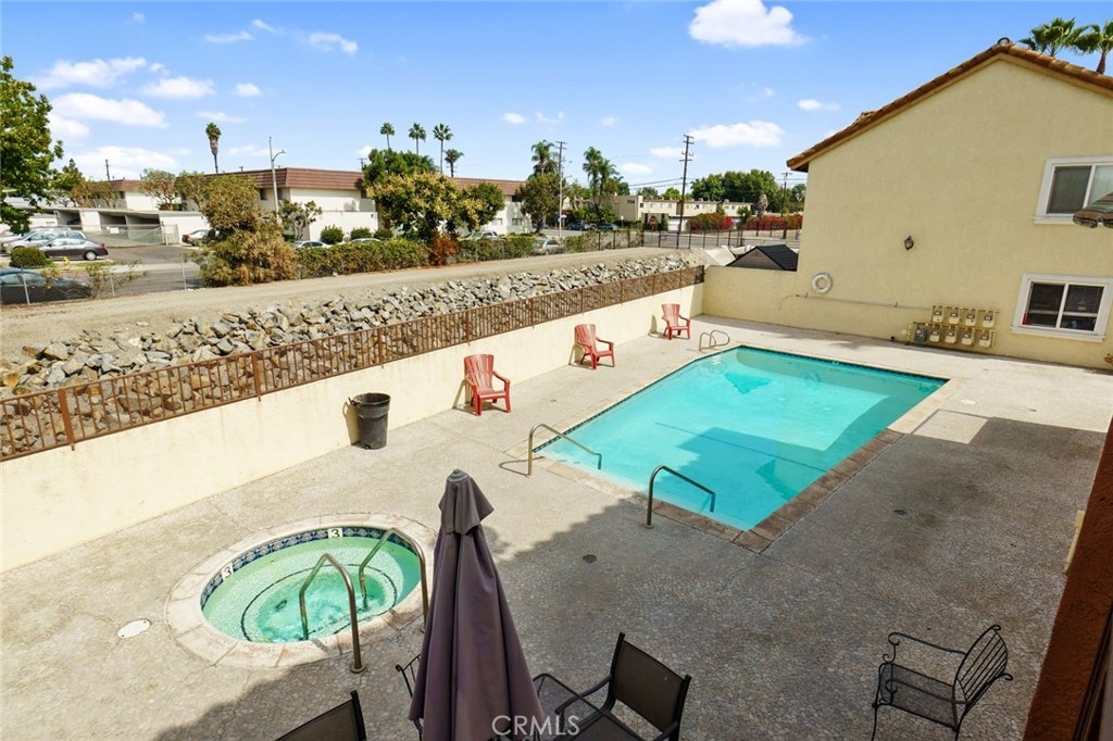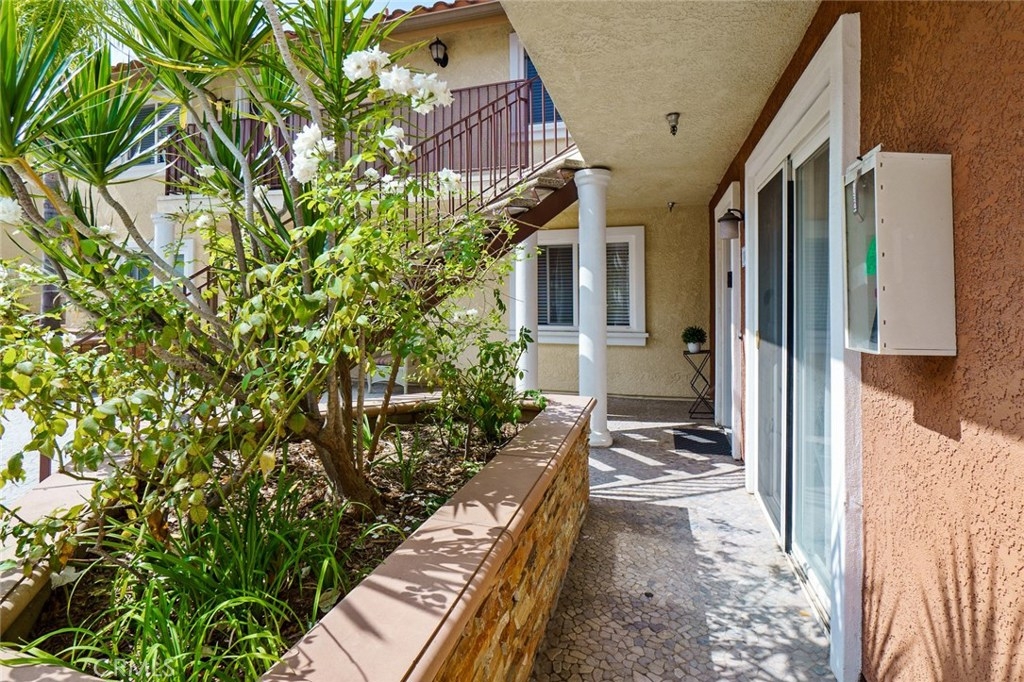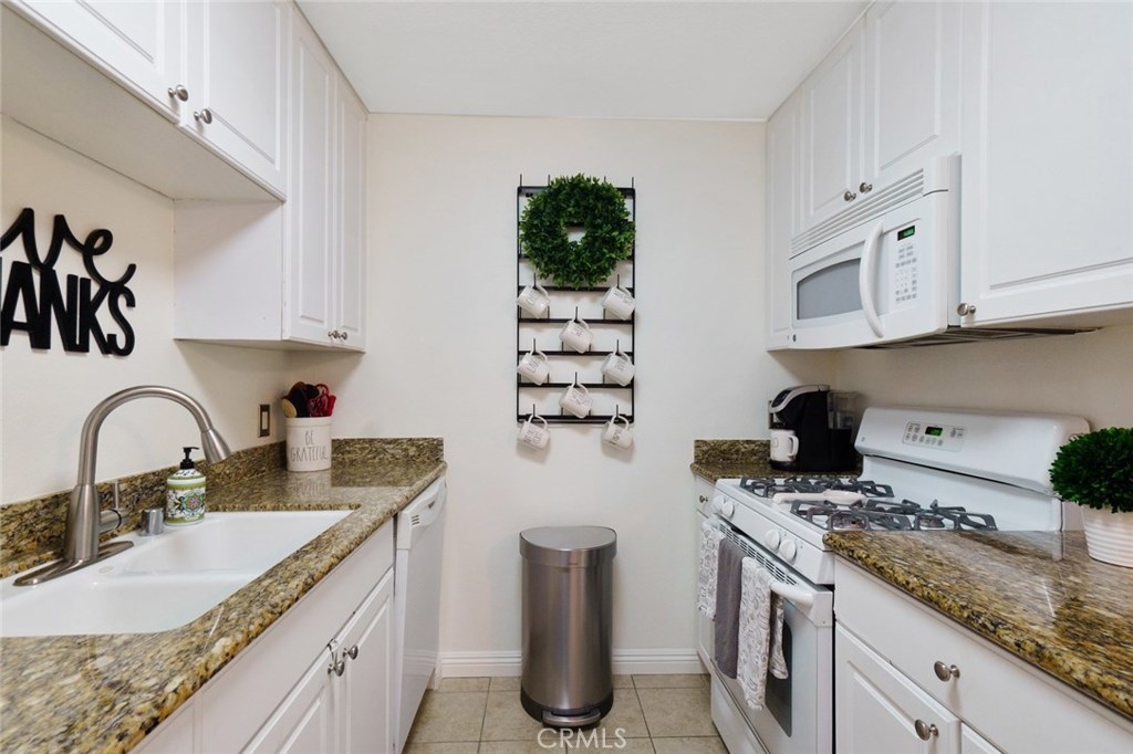 Welcome to this UPGRADED home full of charm! Offers a great open floor plan, you will feel right at home. You will find upgraded laminate wood style floors and freshly painted throughout. Kitchen with granite countertops and plenty of storage. Inside laundry closet complete with washer/dryer! The Master Bedroom features an en-suite beautifully upgraded bathroom with walk-in shower and new vertical blinds on sliding door. Step outside to the quaint patio just off of the master bedroom perfect for enjoying a nice BBQ dinner or relaxing with a cool beverage. Living room offers a second sliding door allowing plenty of light & brightness along with a fresh breeze. Second Bathroom has also been upgraded. Gated Subterranean parking with 2 assigned parking places. The area offers great schools, close by new community park, shopping and only minutes to amusement parks. Hurry and see this home today, it won't last long!
