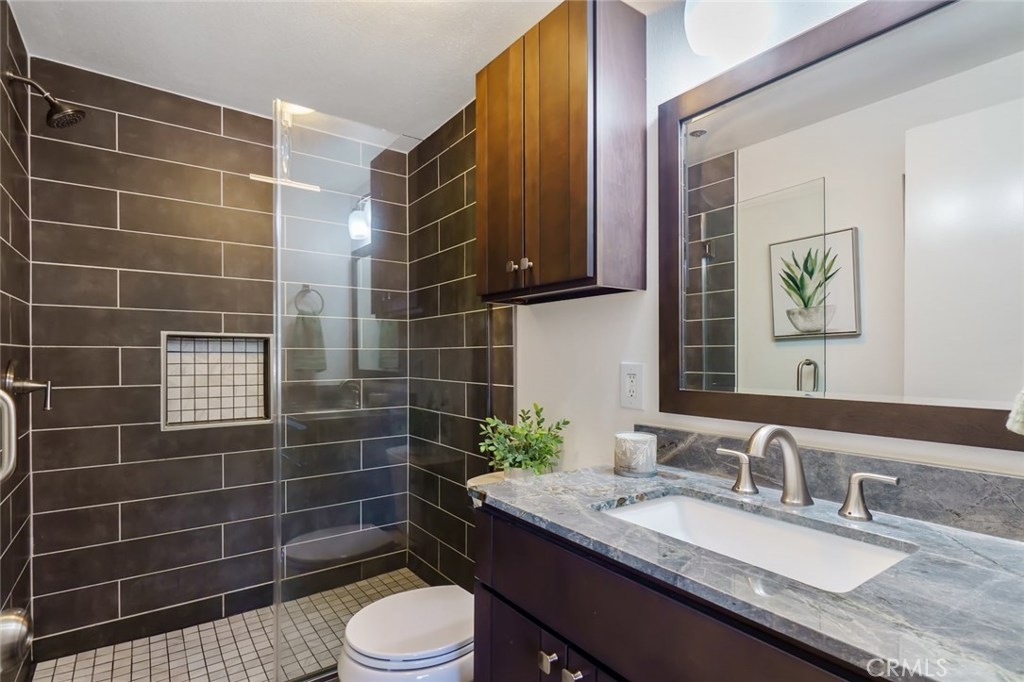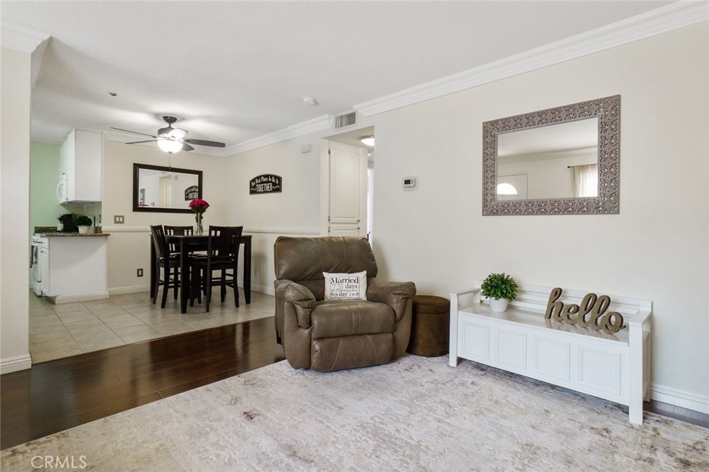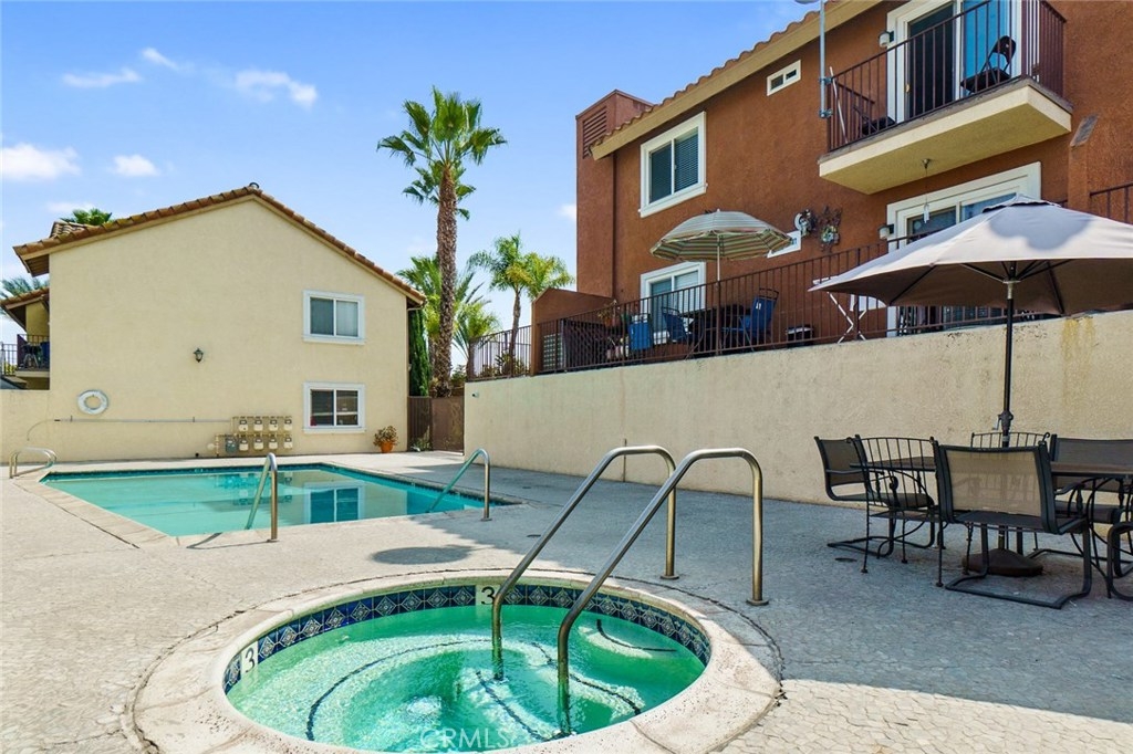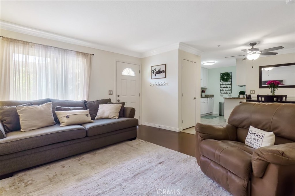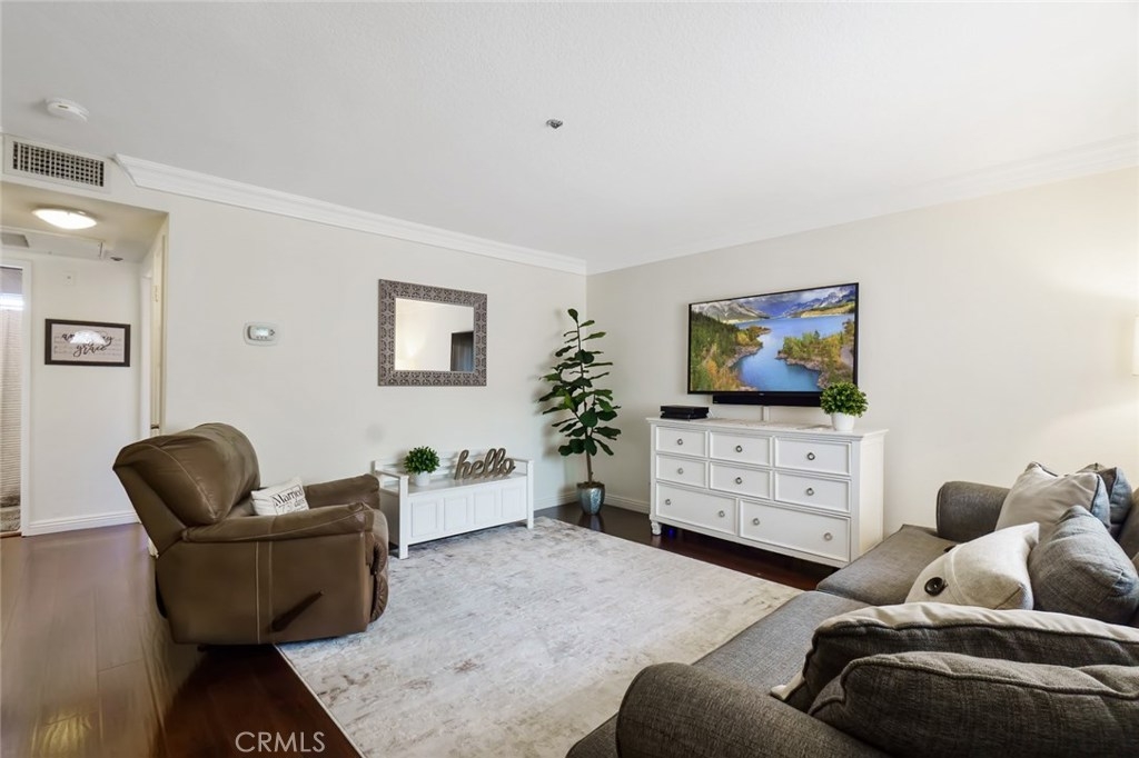 Welcome to this UPGRADED home full of charm! Offers a great open floor plan, you will feel right at home. You will find upgraded laminate wood style floors and freshly painted throughout. Kitchen with granite countertops and plenty of storage. Inside laundry closet complete with washer/dryer! The Master Bedroom features an en-suite beautifully upgraded bathroom with walk-in shower and new vertical blinds on sliding door. Step outside to the quaint patio just off of the master bedroom perfect for enjoying a nice BBQ dinner or relaxing with a cool beverage. Living room offers a second sliding door allowing plenty of light & brightness along with a fresh breeze. Second Bathroom has also been upgraded. Gated Subterranean parking with 2 assigned parking places. The area offers great schools, close by new community park, shopping and only minutes to amusement parks. Hurry and see this home today, it won't last long!