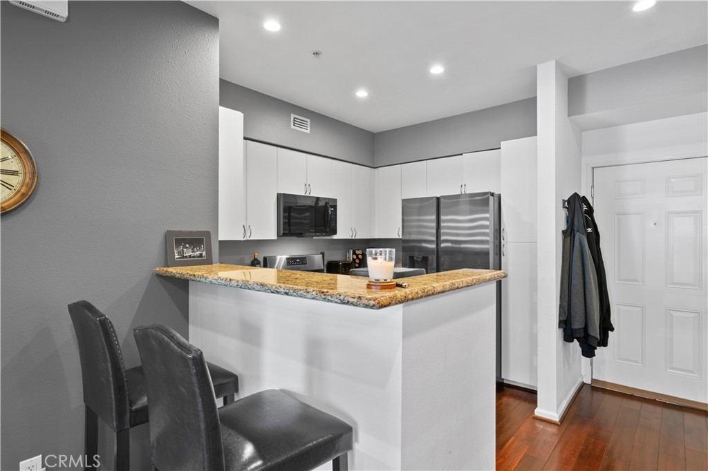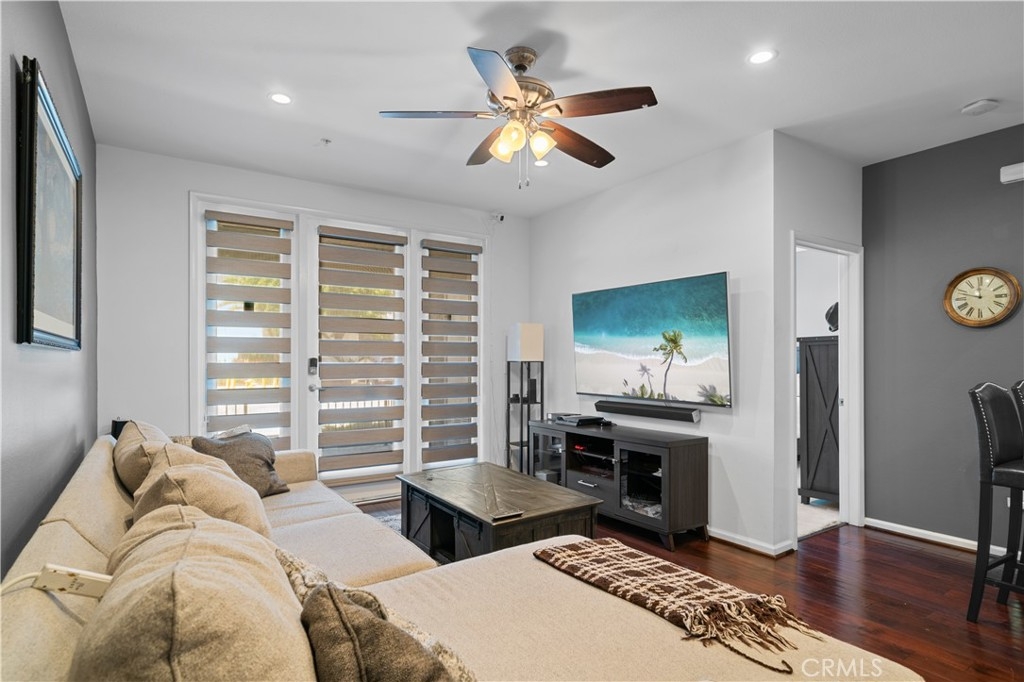 PRICED TO SELL: Rarely listed Beautifully Upgraded, Smart Condo on 1st Floor in the Prestigious Platinum Triangle of Anaheim This 2 bed, 2 bath home has been upgraded with recessed LED lighting in all rooms along with newer paint in every room,smart home features, mahogany hardwood floors, "Black-out" blinds in the living room, mounted 4K UHDTV with surround sound, tankless water heater, and security system. The unit is uniquely located so that the back door directly accesses the semi-private street, Wright Circle, to allow for easy drop off and pick up without having to walk from the parking structure. This unit also comes with 2 parking spots on the 2nd and 4th floors of the parking structure. This smart home comes equipped with WEMO smart light switches, Arlo security cameras/alarm, Ring doorbell, Kevo Smart lock on the backdoor which opens to the main street (which can be opened remotely), Eufy smart lock on the front door, Nest Smart Smoke Detector, and a Nest Smart Thermostat. Also included is the Vizio 70" 4K TV with the surround sound (soundbar, bass, and rear speakers) mounted in the living room!! The home includes a brand new Samsung refrigerator, Samsung microwave, and Samsung 5-burner gas stove. There is also an indoor laundry closet which includes an LG High-Efficiency Washer and a separate LG Gas Dryer. This home also features a tankless water heater and comes with 2 FULL bathrooms with tubs and a shower in each. The resort-style community includes an Olympic-sized saltwater pool, spa, sauna, game room, and business center. The home is located across the street from Angel Stadium and within walking distance of the Grove, Honda Center, Brewheim Brewery, Golden Road Brewery, and Disneyland. There is also access to the 5, 57, and 22 freeways as well as the ARTIC train station. New builds around the community have been steadily going up increasing the value of the neighborhood and there are new developments underway! Come visit your new home today! Don't miss out on this amazing property because it is priced to sell and it WILL go fast!