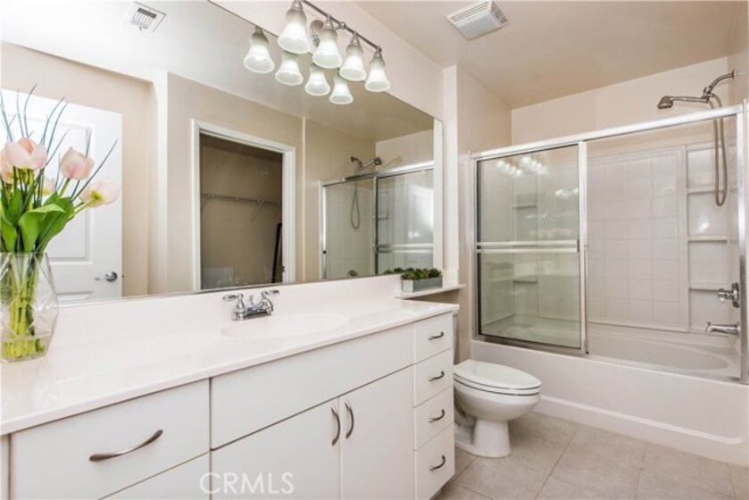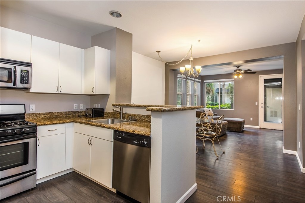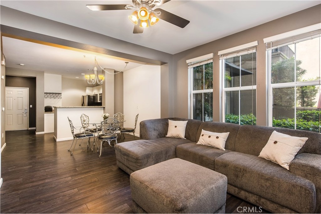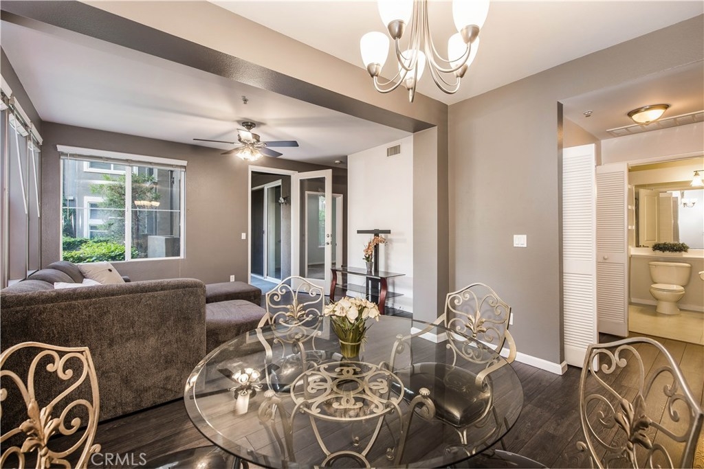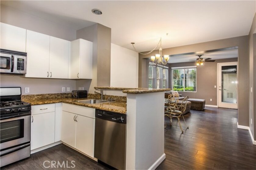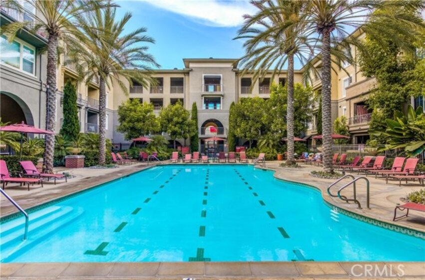 Welcome to the Stadium Lofts of Anaheim, located in Platinum Triangle. Take a step into this meticulously cared for 2 Bedroom 2 Bathroom downstairs-CORNER unit. This Open Floor plan is great for entertaining guests and family. Raven Oak Laminate flooring beautifully complements the Granite Counter-tops as you enter. Stainless Steel Appliances & white cabinetry provide finishing touches to the Kitchen, which overlooks the dining area & living space. First bedroom is on the right, w/ direct access to the first full bathroom. Hallway has a Laundry Closet w/ your own washer & dryer laundry units w/ shelving. Past the living space is your own Master Retreat bedroom w/ private ensuite Master bathroom & Walk-In closet. This bedroom has its own sliding door onto the patio which looks across a serene Courtyard w/ green trees, plants, & lovely water font at the center. Step back outside and this Modern-Urban community provides a plethora of amenities: Pool, Spa, Outdoor Showers, Sauna, Fire pit & Outdoor fireplace, BBQs, Patio Seating, Billiards Room with indoor full Kitchen w/ seating, and Luxer One lockers for package deliveries. All of this is protected with on-site Security Guard and gates with key-fob access. If you need to unwind Zov's Restaurant is right there on the corner, or for a quick bite to eat visit Bay Poke & Tea House. This desired community is less than 1 mile from the 5 & 57 Fwy and Angel Stadium & Honda Center, and less than 2 miles from the 22 Fwy & Disneyland!